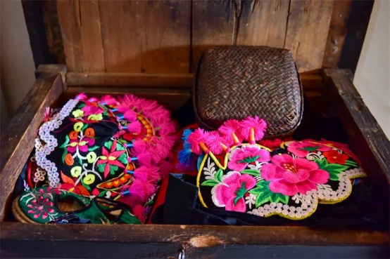 “彝家女子会走路就会跳脚,会拿针就会绣花。”李永福嫫的孙女李彦洁说,自己从会跑会跳就开始和奶奶学习彝绣,慢慢就能独自完成一幅绣品,如今娴熟掌握彝绣技法。她说奶奶一辈子做了很多精美的彝绣,一针一线都带着浓浓的感情,家里箱子里如今还摆着花花绿绿的绣片、服饰、绣花鞋等老物件。