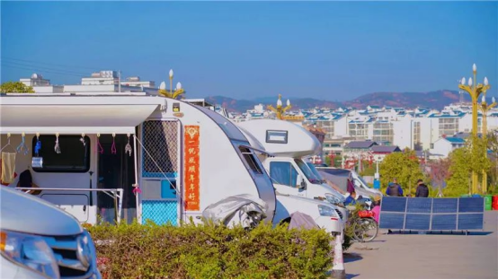 去年以来,大批来自四川、重庆、广东、北京、新疆等地的露营爱好者开着房车到永仁避寒过冬。位于城郊的房车营地可容纳161辆车驻扎,多功能充电桩、洗手间、公共浴室,直饮水站一应俱全。