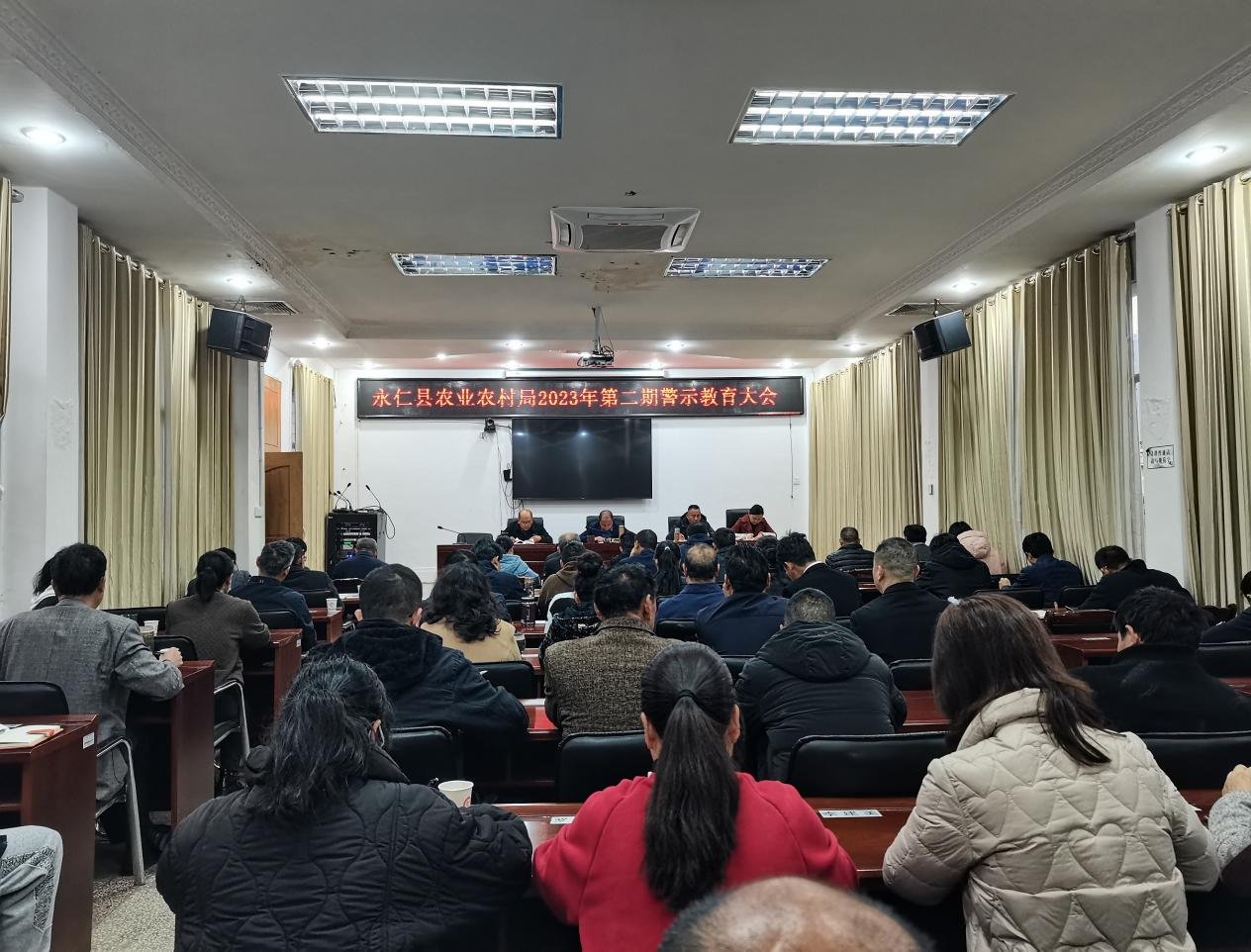 2023年3月13日上午,永仁县农业农村局组织干部职工召开2023年第二期警示教育大会,会上集体观看警示教育片《问“剑”破局》1-4集,深入剖析违纪违法典型案例,教育和引导干部职工以案为鉴、警钟长鸣,推进全面从严治党向纵深发展。