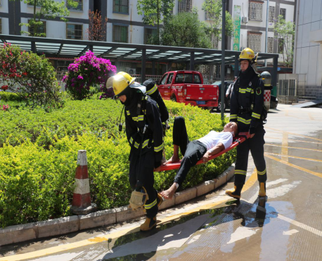 第二部分是开展应急救援演练。根据演练方案,模拟县人民医院内科大楼二、三楼着火,值班人员按下手动报警,消防警铃响起,值班人员同时拨打求救电话,在演练指挥部指挥长夏竟文的指挥下,灭火和应急救援组、疏散引导组、安全警戒组、医疗救护组、信息保障组各组人员各司其职,将人员快速、有序、安全疏散。大家将此次消防演练当成实战,认真对待,各个环节有条不紊,达到了演练目的。