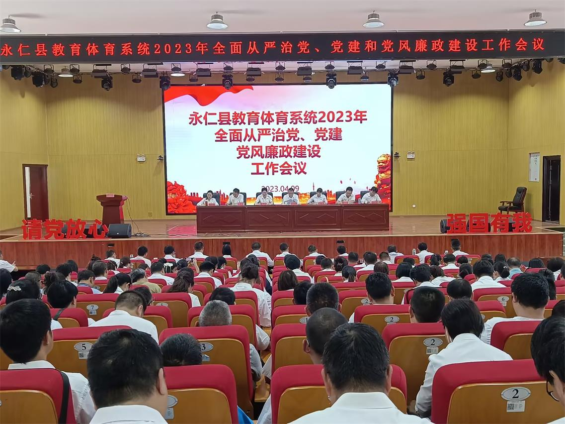 为深入贯彻落实党的二十大精神,全面推进教育体育系统巡视整改工作,4月9日下午, 永仁县教育体育局在永仁一中思源会堂组织召开“2023 年全县教育体育系统全面从严治党、党建和党风廉政建设工作会议 。”