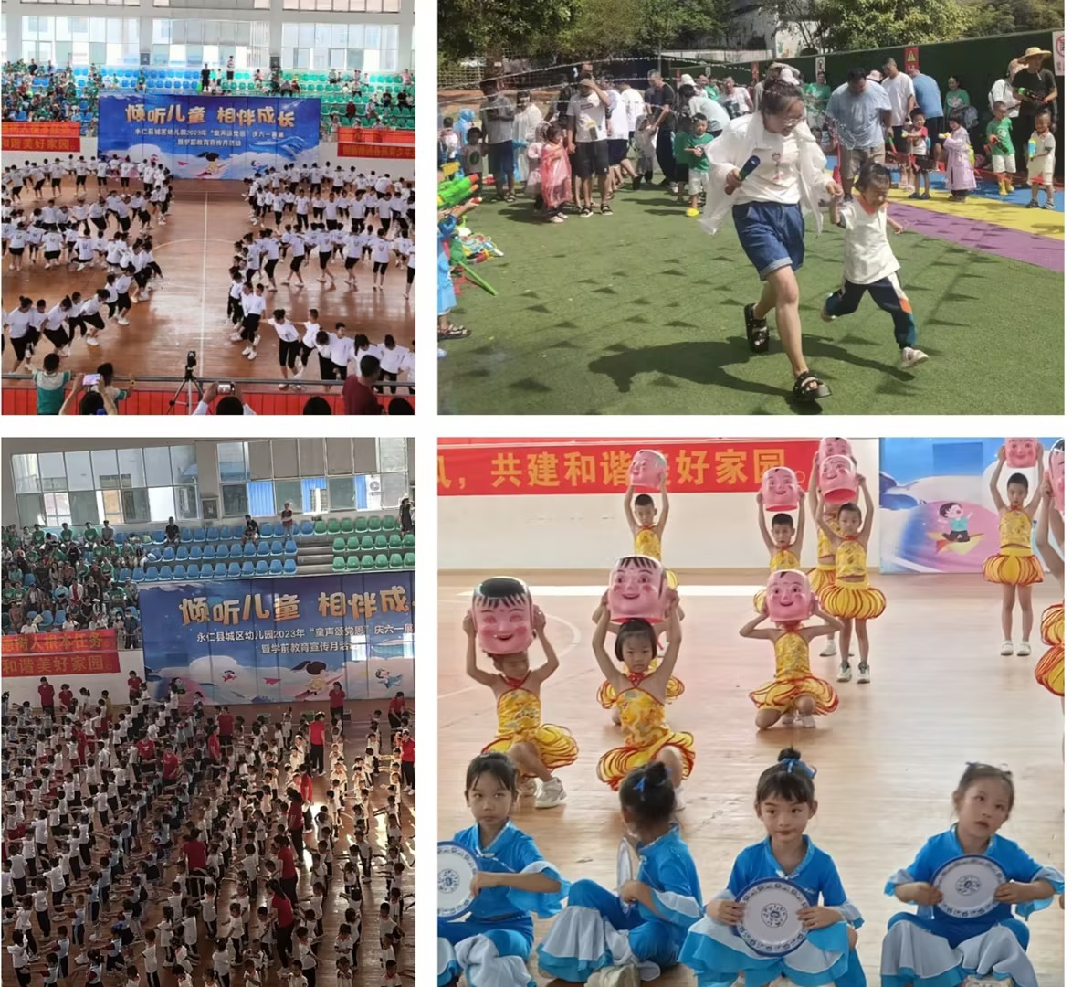 永定小学的孩子们兴高采烈地表演文艺节目、进行趣味游园活动、开展“永远跟党走 争做好队员”主题班会、参加书画展等系列庆祝活动,共同庆祝自己的节日,把美丽的校园变成了欢乐的海洋。在“以德树人、以美育人,以文化人”的教育理念指引下,在“让艺术弥漫校园、让艺术滋养生活”的校园文化氛围里,小朋友们戴上鲜艳的红领巾,穿上漂亮的衣服,尽情展示新时代少年儿童朝气蓬勃的精神面貌;永仁县城区幼儿园的孩子们通过亲子操、球操等多种形式的文艺演出以及打水仗等游戏,表达心中的喜悦,充分展现自我;莲池中心小学举行了“学习党的二十大 争做好少年”合唱比赛。嘹亮的歌声在校园回响,飞扬的旋律在同学们的心中回荡。孩子们用甜美的歌声,可爱的笑脸,表达对伟大的祖国、对亲爱的党深深的热爱;民族小学举行了“童心萌动,欢庆六一”儿童节主题游园活动。孩子们通过挑战“小猫钓鱼”“乒乓球大冒险”“赶小猪”等10余个游戏,不仅收获了奖品,也收获了满满的快乐,表现出了独立自主、敢于挑战的意志品质,营造出了欢乐和谐的游戏氛围。