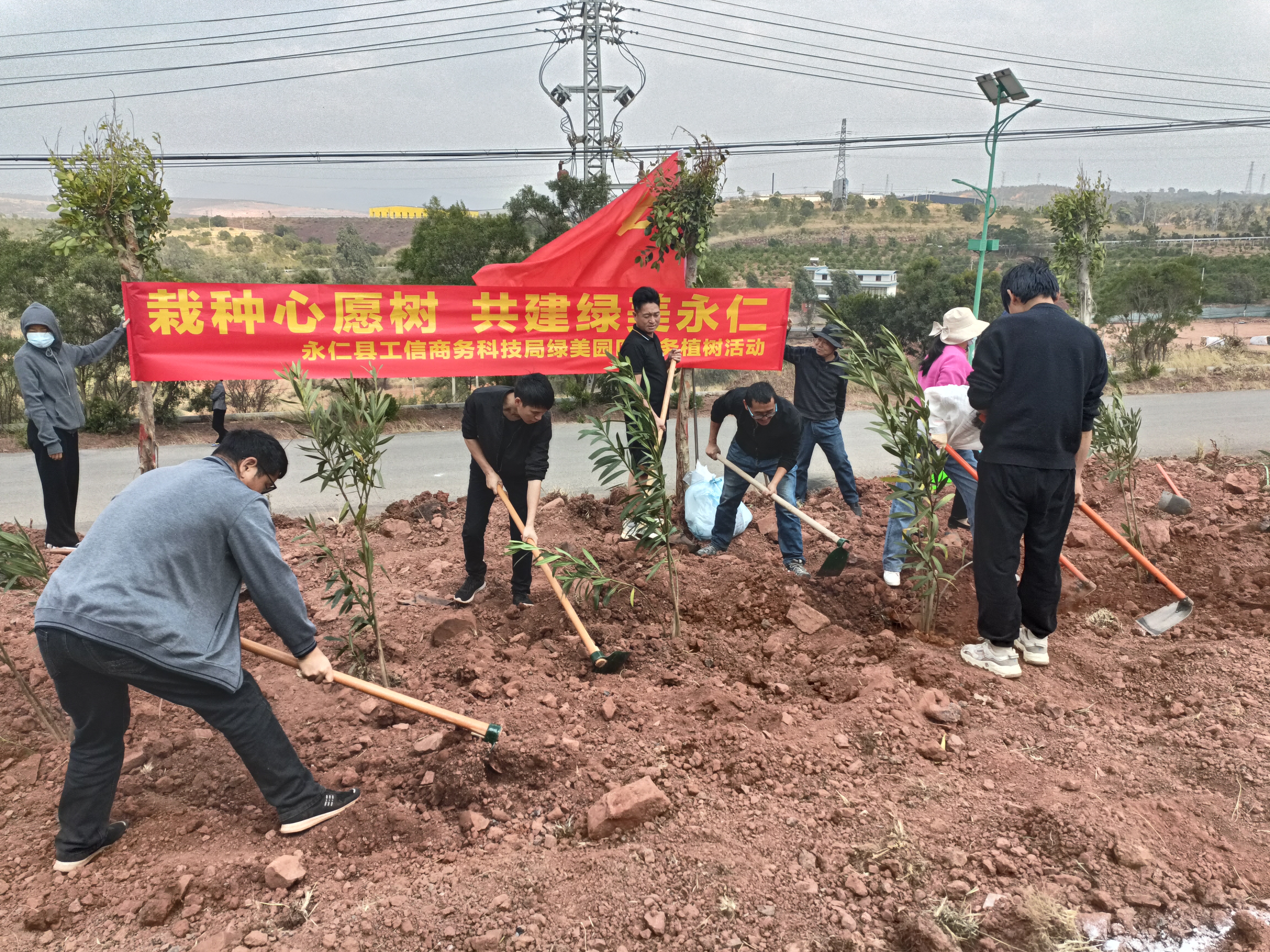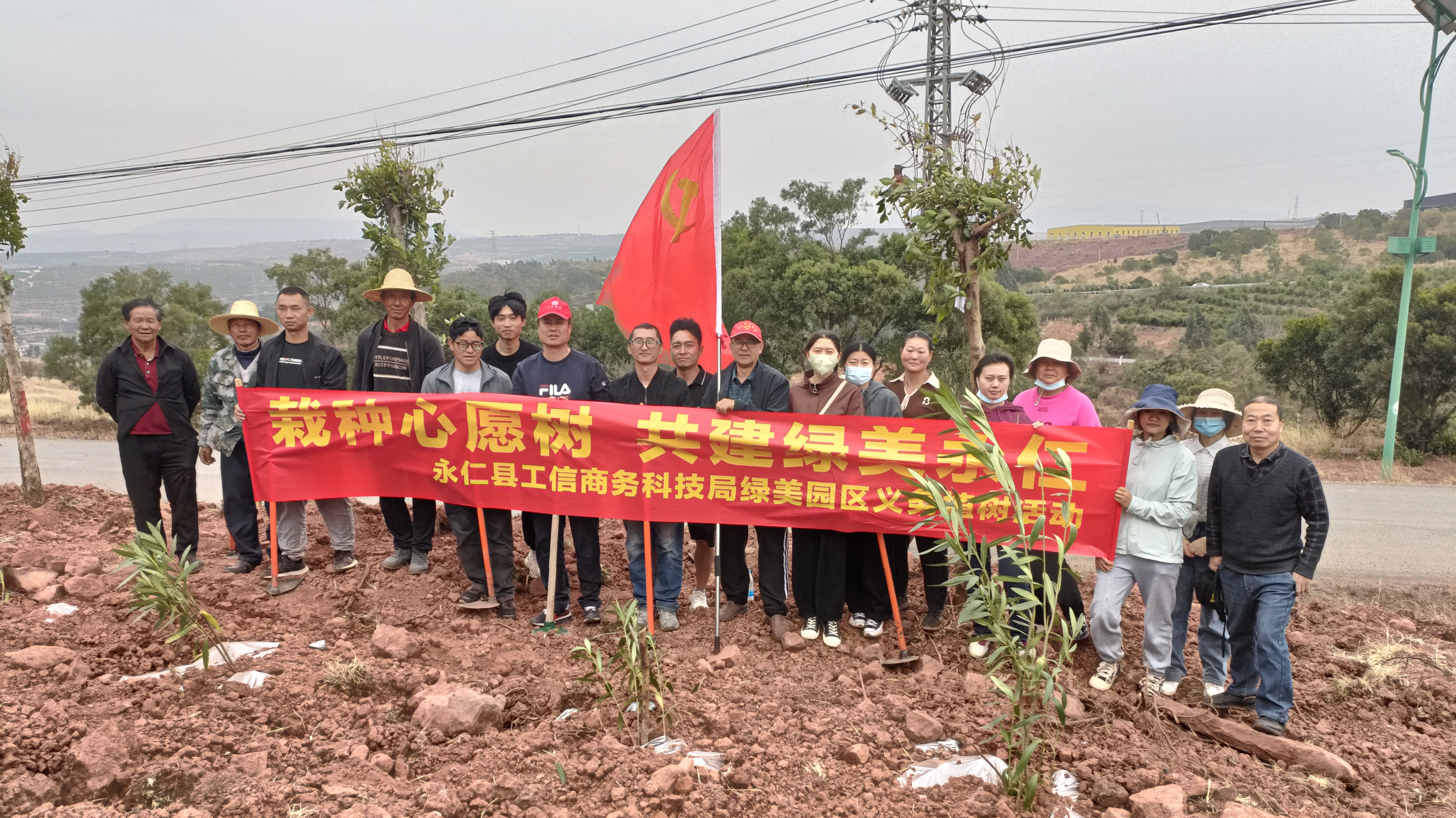 为加快推进我县绿美园区建设工作,促进园区整体形象提档升级,永仁县工信商务科技局以打造环境优美、生态和谐园区为目标,于2023年3月28日组织开展绿美园区义务植树活动,示范带动永仁县循环经济片区11家企业积极参与义务植树,着力改善园区生产生活环境。