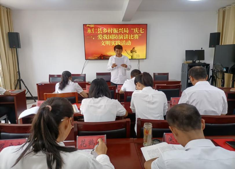 活动在传达学习习近平总书记关于对党的建设和组织工作重要指示精神中拉开序幕。为表扬先进、鼓舞士气,激励广大党员在乡村振兴事业中奋发有为、建功立业,会上对4名优秀共产党员,2个优秀股室和1名优秀聘用人员进行表扬。会上还举行了县乡村振兴局“爱我国防”演讲比赛,表达了对祖国繁荣昌盛的美好祝愿,生动诠释了对“爱我国防”的深刻理解。
