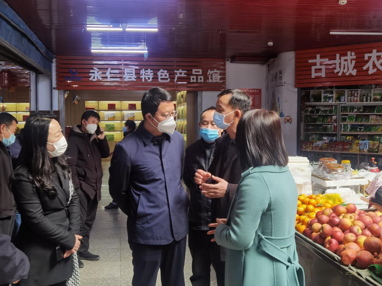 2023年1月12日,楚雄州人民政府副州长程鹏在永仁县陈元春副县长陪同下,到永仁县智慧农贸市场开展调研指导。