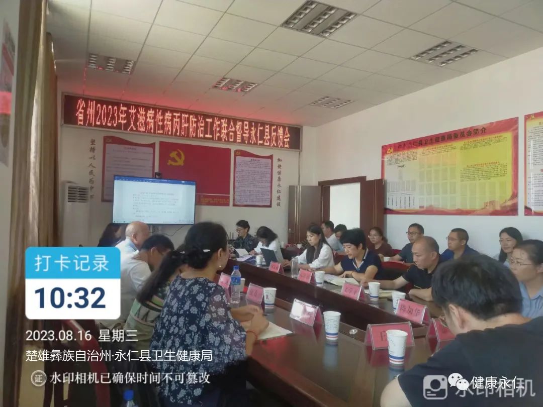 为促进《云南省第五轮防治艾滋病人民战争实施方案(2021—2025年)》各项工作措施落实,促进艾滋病监测检测、高危行为干预、艾滋病病毒感染者管理、梅毒规范诊疗、性病丙肝疫情管理和艾滋病防治社会组织基金项目等工作全面落实,及时发现并解决工作中存在的难点、痛点问题,云南省预防控制中心抽调省内相关领域专家于2023年8月14日—16日对永仁县开展艾滋病、性病、丙肝综合防治现场技术指导和数据质量评估核查。联合督导组由保山市疾病预防控制中心副主任杨家芳任组长,云南省疾控中心、保山市疾控中心、楚雄州卫健委、楚雄州疾控中心共14人组成。