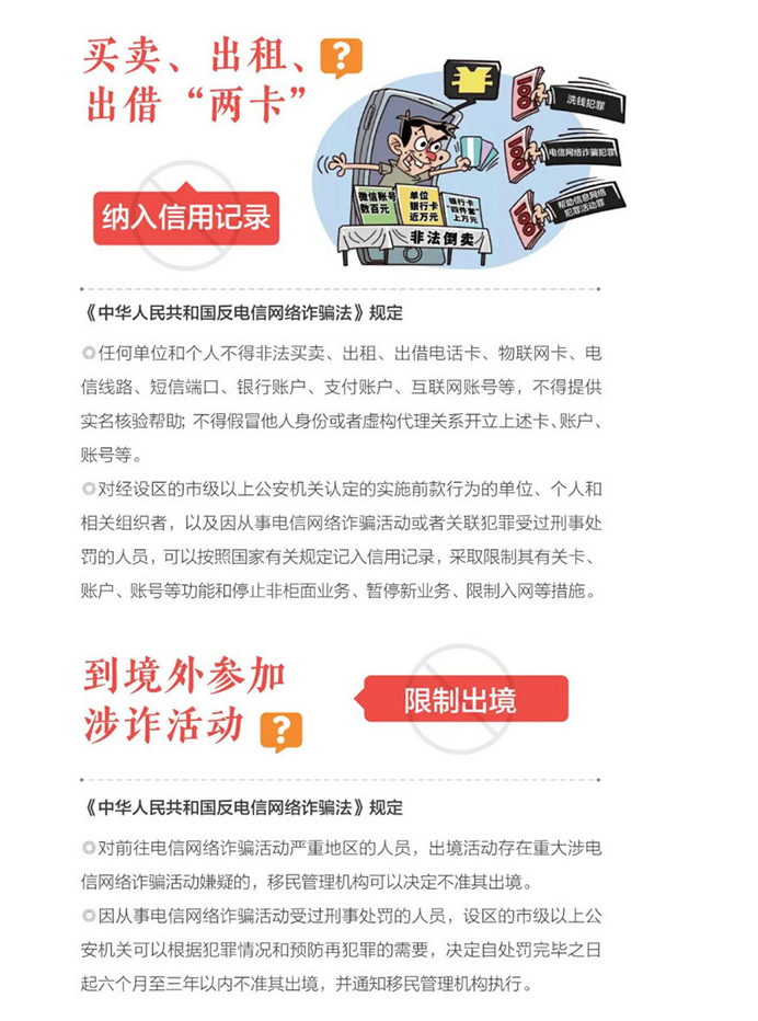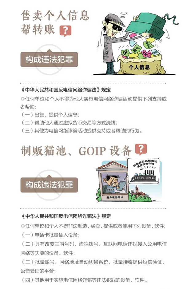 3.保护好个人隐私。切记不要将个人信息、银行卡、验证码等告诉他人;请妥善保管好自己的银行卡、手机卡,坚决做到不出租、出借、出售,不给电信网络诈骗犯罪分子提供任何诈骗工具,否则将涉嫌“帮信罪”,负相应法律责任。