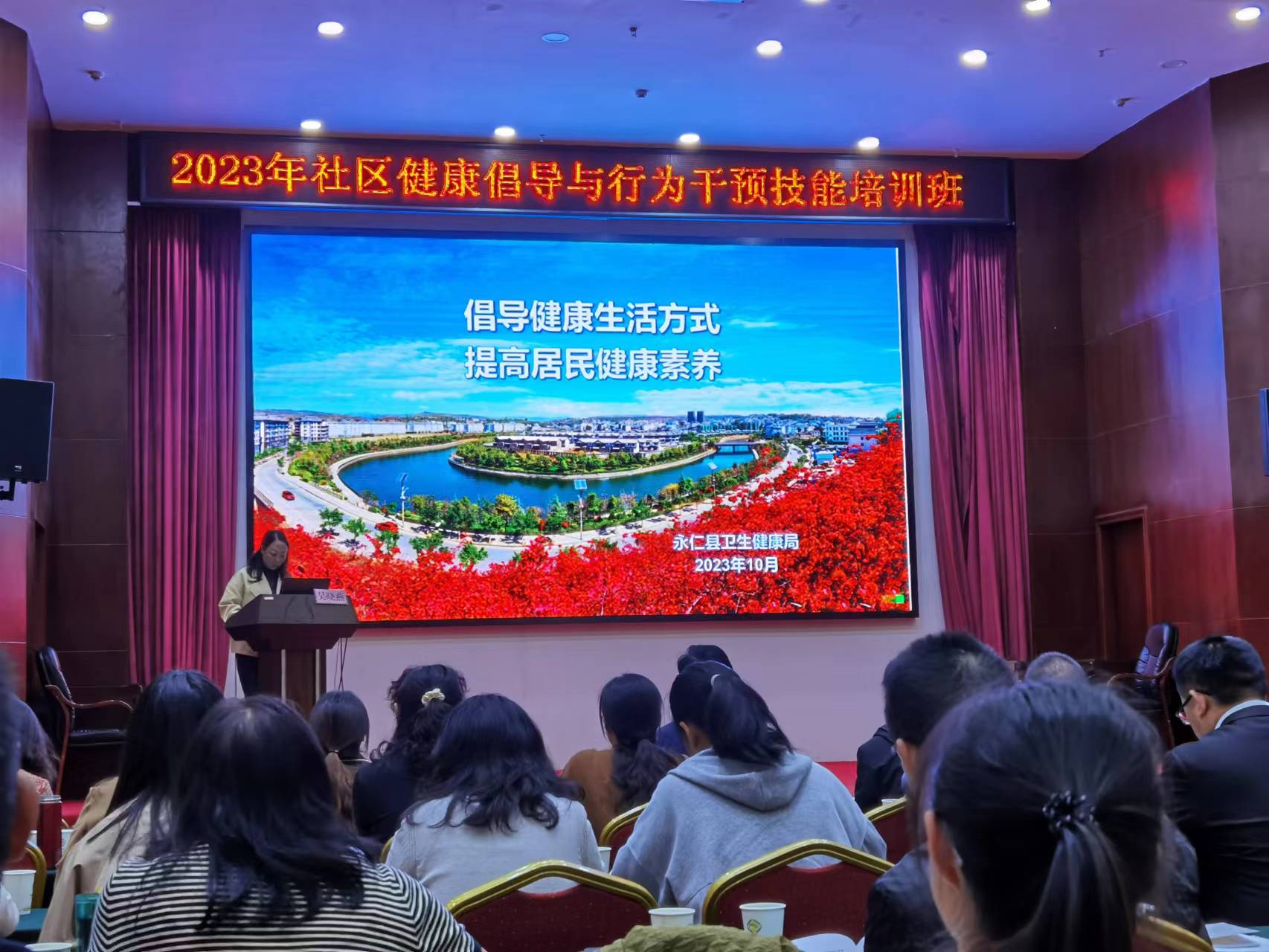 10月10日-11日,云南省健康素养促进行动项目管理办公室举办的2023年社区倡导与行为干预技能培训班在丽江市举办。培训会上,永仁县以《倡导健康生活方式提高居民健康素养》为题在大会上作典型经验交流发言。