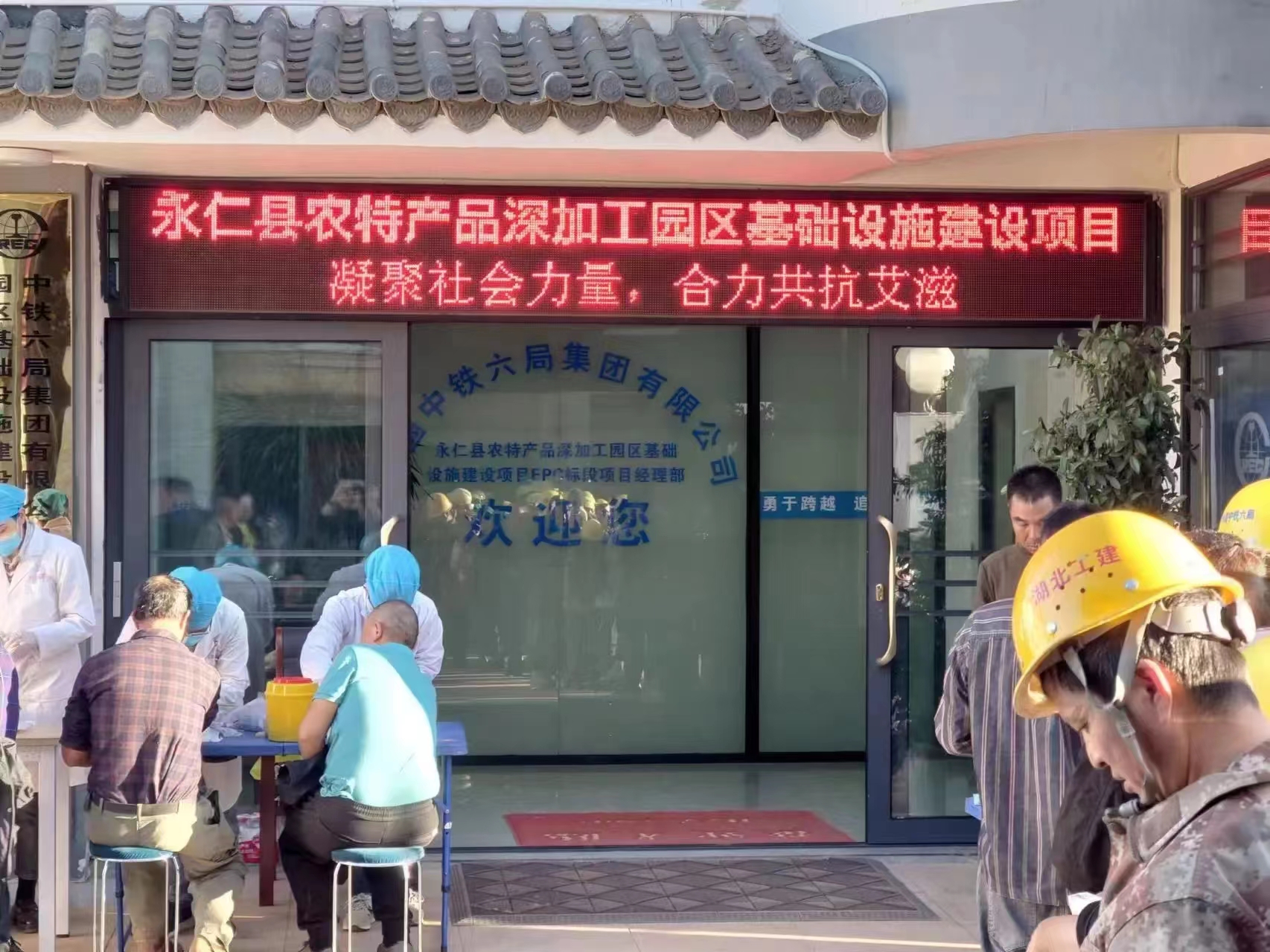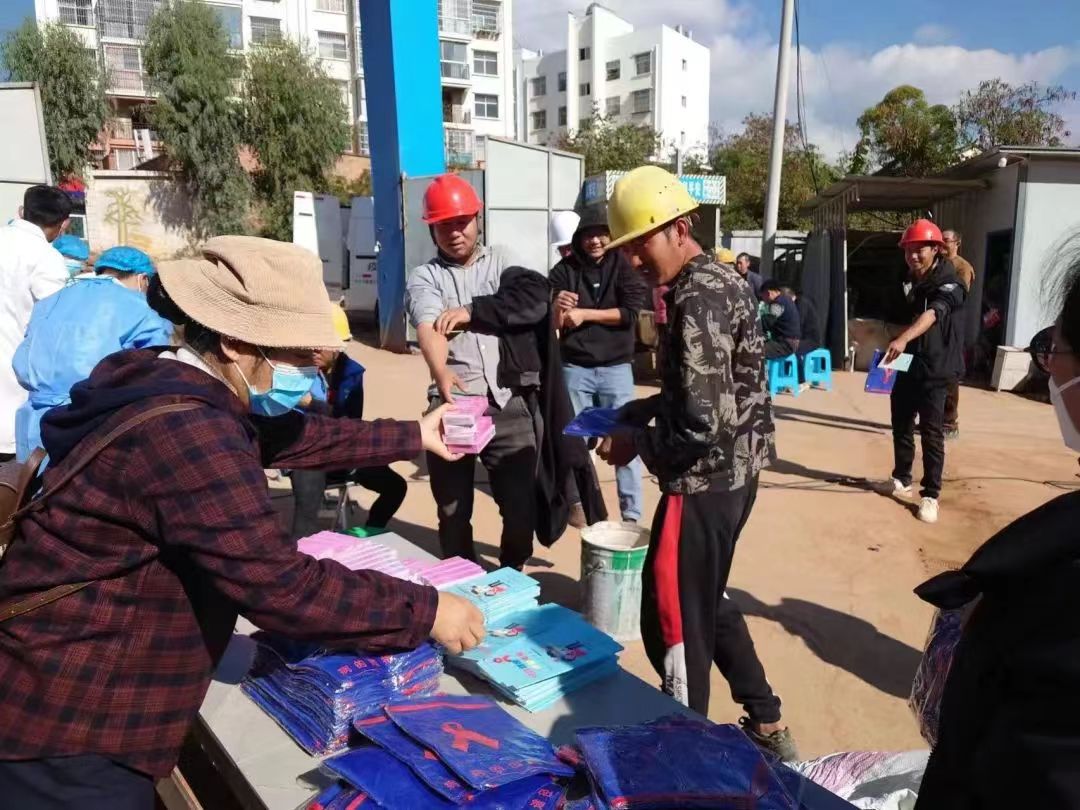 为进一步提高流动人口、企业员工对艾滋病防治基本知识的了解,做好艾滋病防治常态化宣传教育工作,永仁县卫生健康局(防艾办)联合县住建局、县总工会、县人社局深入永攀物流港建设项目基地、“幸福里”社区、工业园区等16个流动人员密集场所,开展艾滋病、梅毒、丙肝筛查。该活动共筛查1200余人、发放宣传折页2000余份、围裙 2500个、安全套12000只,倡导群众自觉树立科学防艾,抵御毒品和健康第一责任人意识。