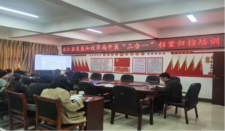 为认真贯彻落实《楚雄州档案局关于印发〈推行“三合一”制度后常见门类档案整理指南》,全面推行机关档案分类方案文件材料归档范围和档案保管期限表三合一制度。近日,县发展和改革局邀请县档案局专业人员对机关档案“三合一”归档整理方法进行业务培训会。
