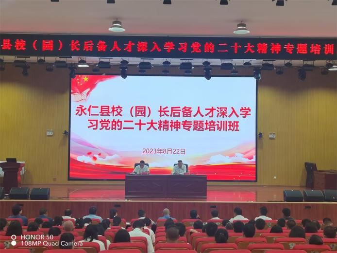 教育是最大的民生,人才是教育发展的根本保障。为建设一支政治强、业务精、作风正、能够担当学校发展重任的高素质专业化校(园)长队伍,根据《永仁县校(园)长后备人才培养计划(试 行)》1+6 培养方案,经县委人才工作领导小组办公室研究,8月22日,在永仁一中思源会堂举办了永仁县校(园)长后备人才深入学习党的二十大精神专题培训。全县各中小学校校(园)长及后备干部80人参加培训。