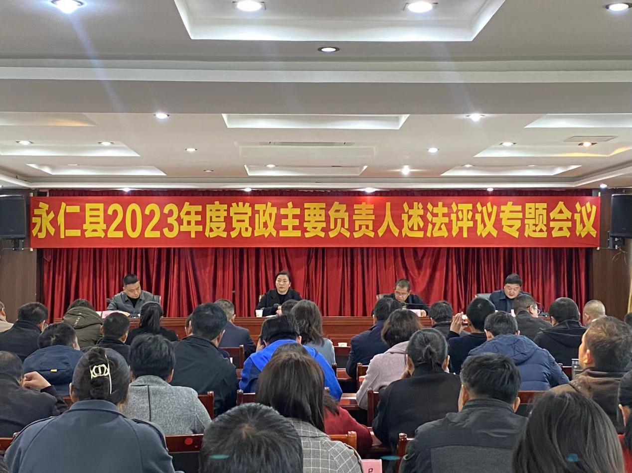 为全面贯彻习近平法治思想和中央全面依法治国工作会议精神,坚持抓住领导干部这个“关键少数”,切实促进各级党政主要负责人履行好法治建设组织者、推动者和实践者的职责,中共永仁县委全面依法治县委员会办公室于2024年1月3日组织召开2023年党政主要负责人述法评议专题会议,县委政法委书记、县委全面依法治县委员会办公室主任周艳琼出席会议并讲话。