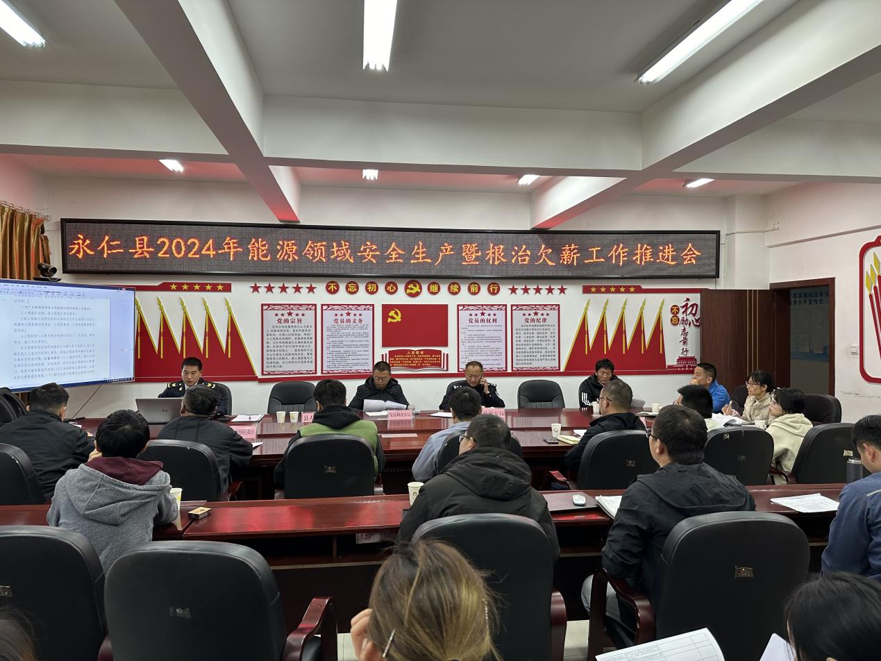 1月12日下午,县发改局组织召开永仁县2024年能源领域安全生产暨根治欠薪工作推进会,会议由局党组成员、副局长严朝光主持,会议邀请县劳动保障综合行政执法大队大队长杨国梁同志、县公安局治安大队大队长蒋东游同志参加。长电云能发电(永仁)有限公司、永仁滇能零碳能源开发有限公司、永仁风光新能源科技有限公司、永仁华电新能源有限公 司、金江能源开发(永仁)有限公司等能源企业相关负责人及所涉及项目总包单参会。