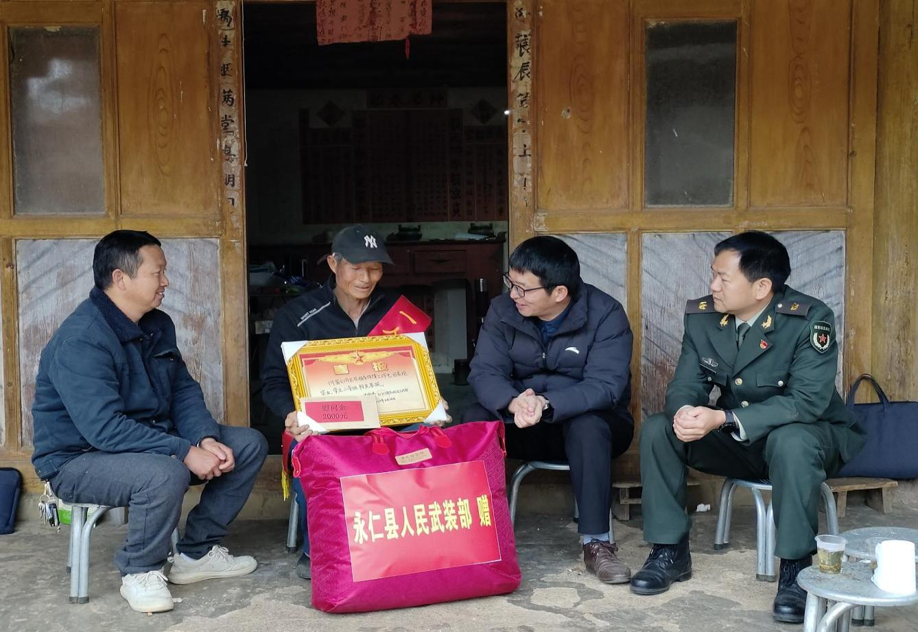 为持续深入开展“学习强军思想,建功强军事业”教育实践活动,大力弘扬拥军优属、拥政爱民的光荣传统,激励军人立足军营建功立业,激发适龄青年投身军队和国防建设的热情,近日,永仁县人民政府副县长尹丽峰、县人民武装部、县退役军人事务局和乡镇分管领导组成慰问组为莲池乡班别新村现役军人何富云家人送去“二等功”牌匾、喜报及慰问金,并向家属表示热烈祝贺,并致以崇高的敬意。