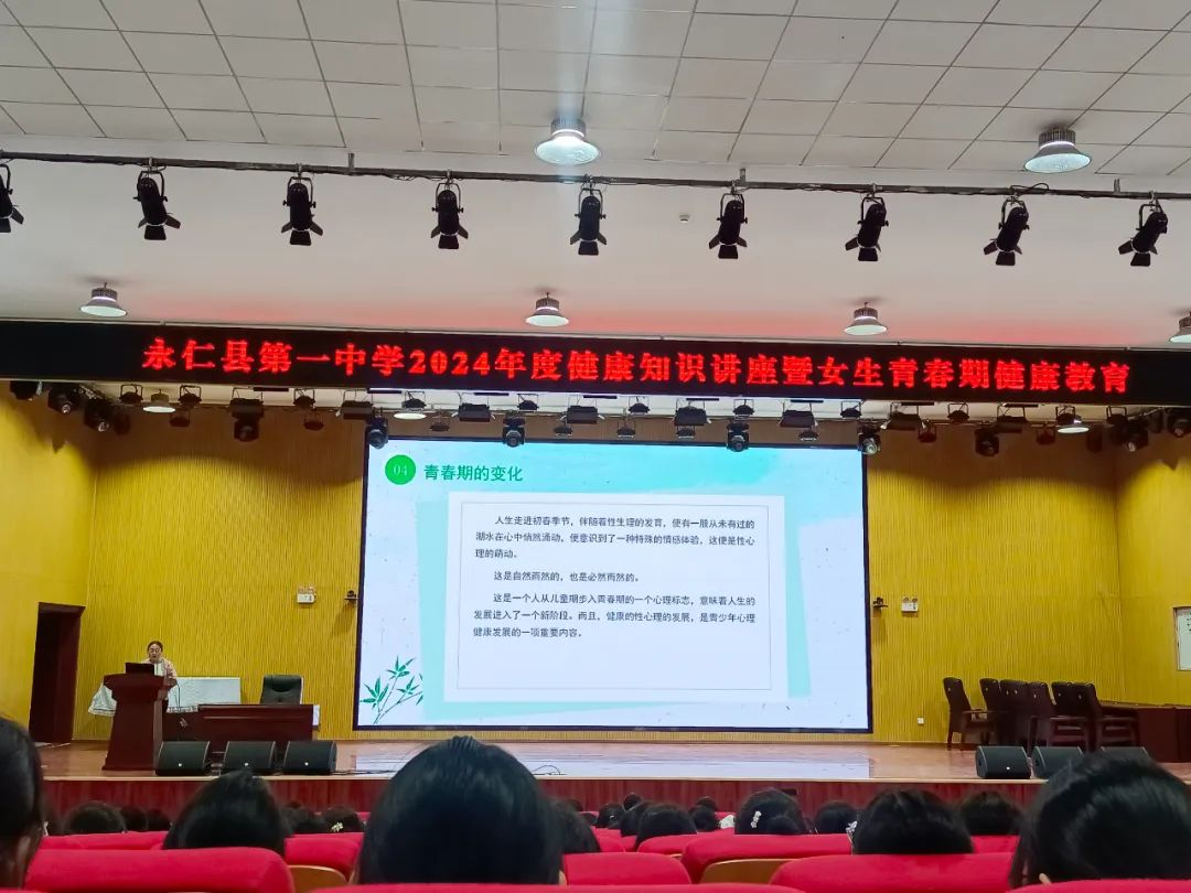 为深入贯彻落实党的二十大精神,学习贯彻习近平新时代中国特色社会主义思想主题教育,切实将医院的优质医疗服务带入校园,确保青春期学生群体得到系统规范、有针对性的健康教育和指导,提高青年学生的自我保护意识。2024年3月1日晚永仁县医共体人民医院派出医务宣讲团走进永仁县第一中学,为全校女同学开展健康知识讲座暨女生青春期健康教育主题讲座,全校师生共计1000余人参加。