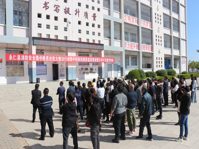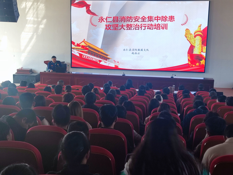 为有力推进消防安全集中除患攻坚大整治行动,针对前期排查发现的三类重点整治场所中违规设置防盗笼影响人员疏散灭火救援的突出火灾风险,3月1日下午,永仁县消防救援大队在县民族中学组织开展突出消防风险隐患现场警示和示范教学培训,县消防安全委员会成员单位分管领导,县教体部门分管安全的负责同志,全县各中小学校和校外培训机构负责人、全县乡镇卫生院、和九小场所负责人200余人参加。