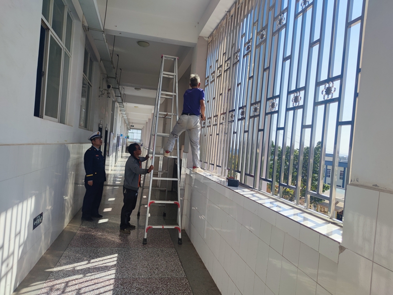 随后,大队监督员对全体参训人员进行了拆除违规防盗笼示范教学现场培训,详细讲解了设置不当的防盗窗,在发生火灾时会严重威胁生命安全,应及时拆除、整改在门窗上设置影响逃生和灭火救援的铁栅栏、铁丝网等障碍物,为我们的生命安全“网”开一面。同时提醒各单位参会人员在防盗笼拆除整改过程中的注意事项,培训现场组织了专业人员对学校存在隐患的防盗窗进行了立即拆除和指导,当天下午,永仁县民族中学拆除阳台防盗笼48道,共计120.8平方米;目前,全县中小学校和幼儿园集中拆除改造违规防盗笼工作正在有序进行中。