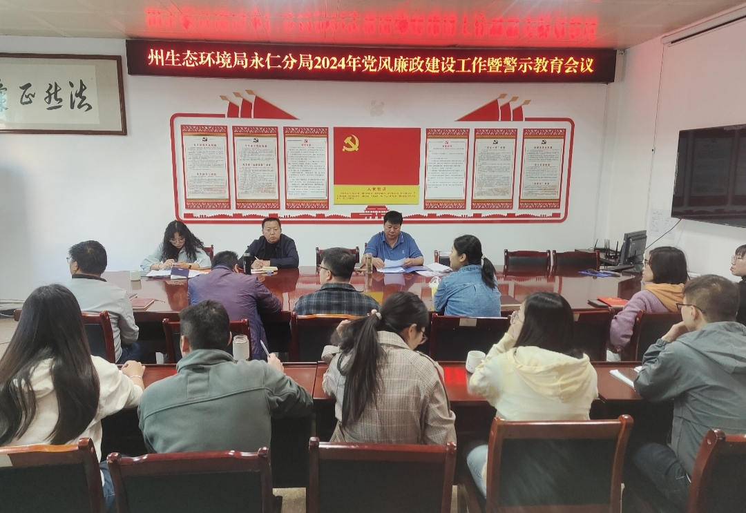 “要加强干部队伍建设,以彻底的自我革命精神,着力打造绝对忠诚、绝对可靠、绝对纯洁的生态环境铁军”。3月11日,州生态环境局永仁分局召开2024年党风廉政建设工作暨警示教育会议,全体干部职工集体观看警示教育片《信仰迷途》,同上2024年警示教育“第一课”,同时局党组召开“春争日·夏争时—廉洁大事不宜迟”专题党课,筑牢干部职工廉洁思想根基。