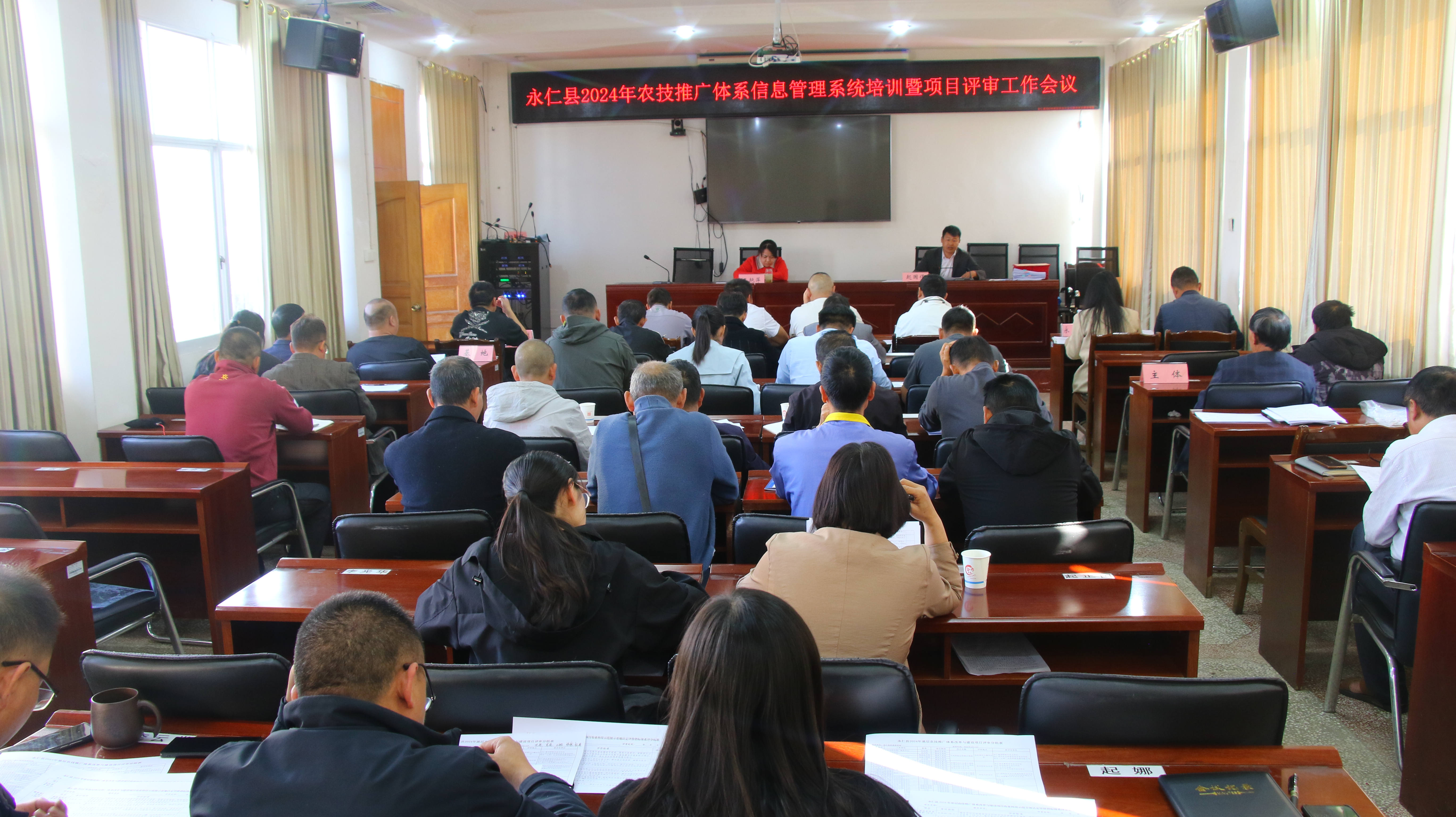 3月14日永仁县农业农村局召开2024年农业技术推广体系管理信息系统培训暨项目评审工作会议。县农业农村局分管领导、项目领导小组办公室成员、各乡镇农业农村服务中心主任、县级农技专家组、申报农业科技示范展示基地、农业科技示范主体建设实施单位负责人50余人参加会议。