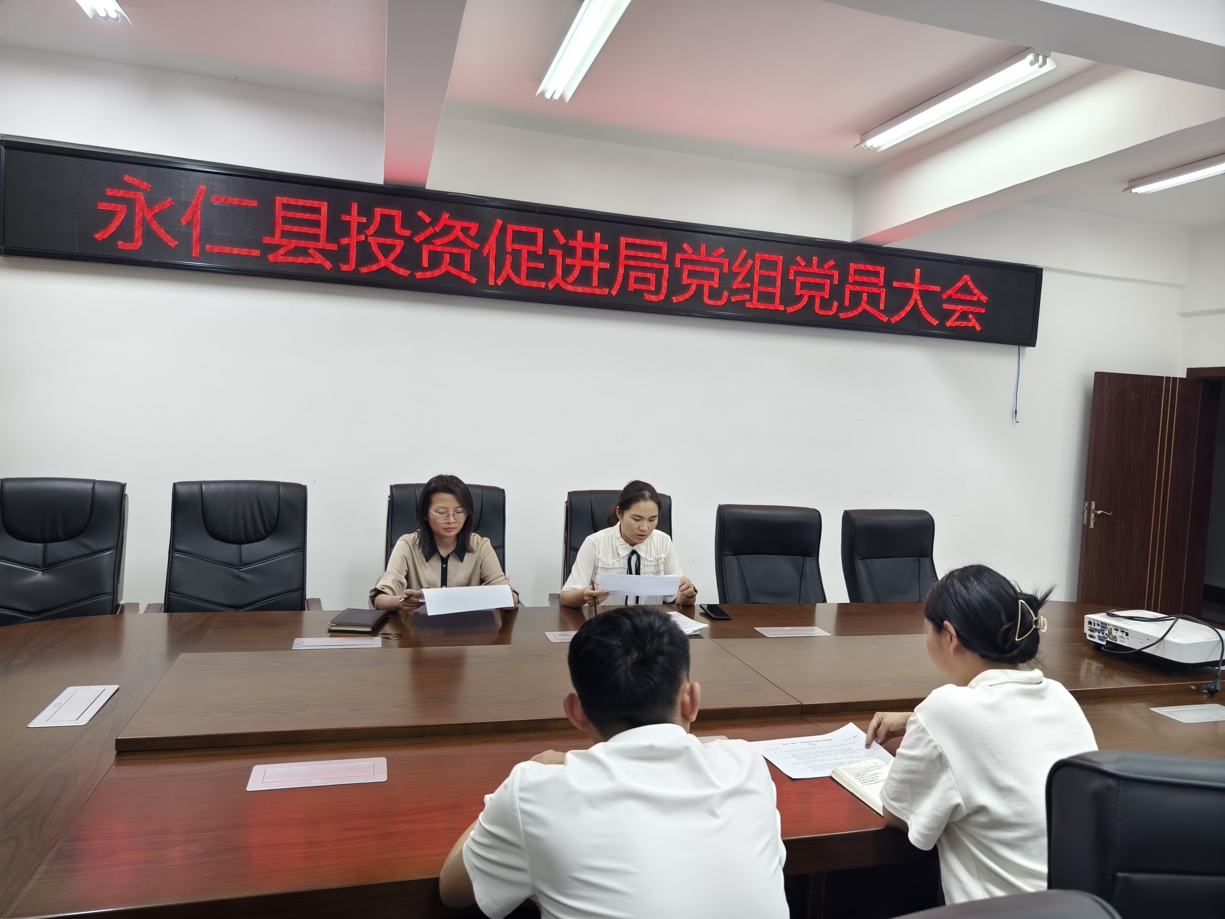 4月12日,永仁县投资促进局党组召开党员大会,传达学习中央、省州县委党纪学习教育有关会议精神,紧密结合招商引资工作实际,动员部署投资促进局党纪学习教育工作。