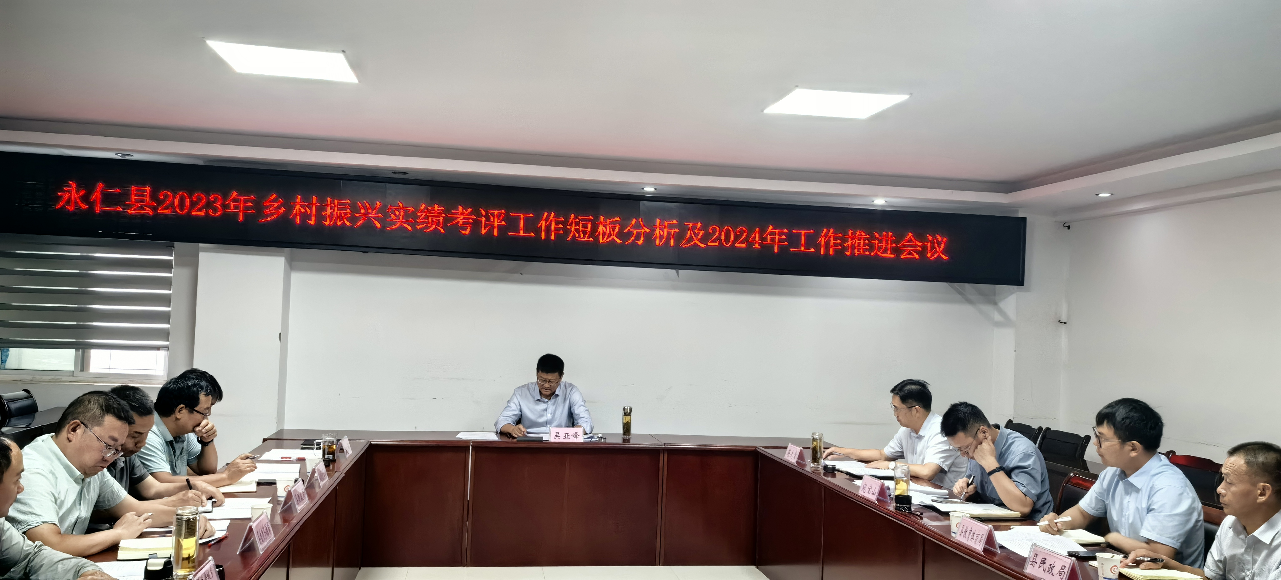 2024年4月25日,永仁县召开2023年乡村振兴实绩考评工作短板分析及2024年工作推进会议。县委书记吴亚峰主持会议,县委副书记蒋先常、县委办公室主任鲁永祥、县人民政府副县长宛宝山出席会议,16家县级单位主要负责同志参加会议。
