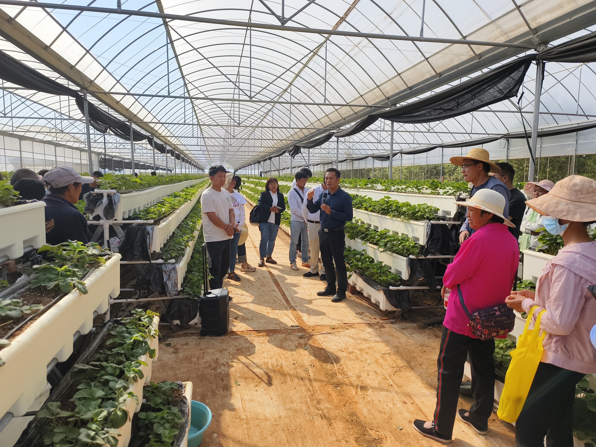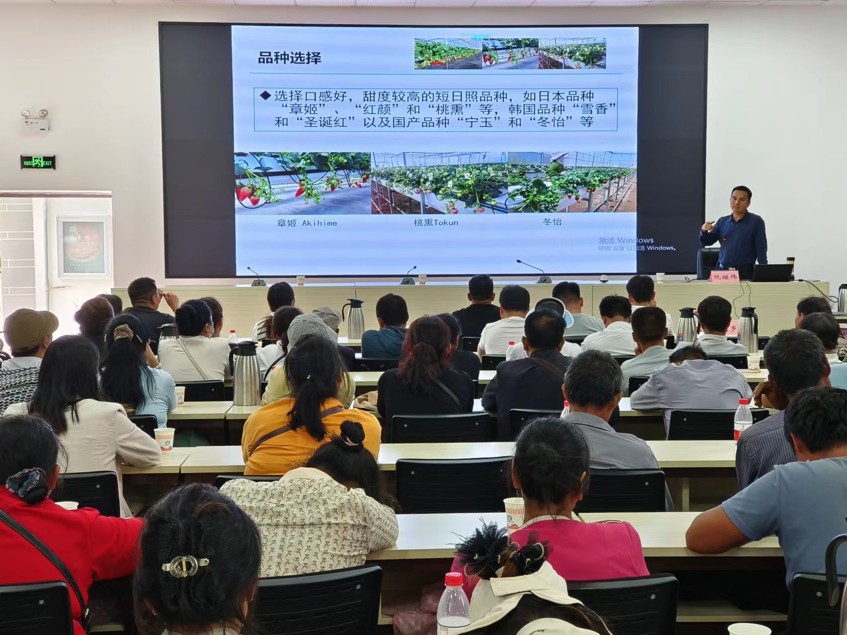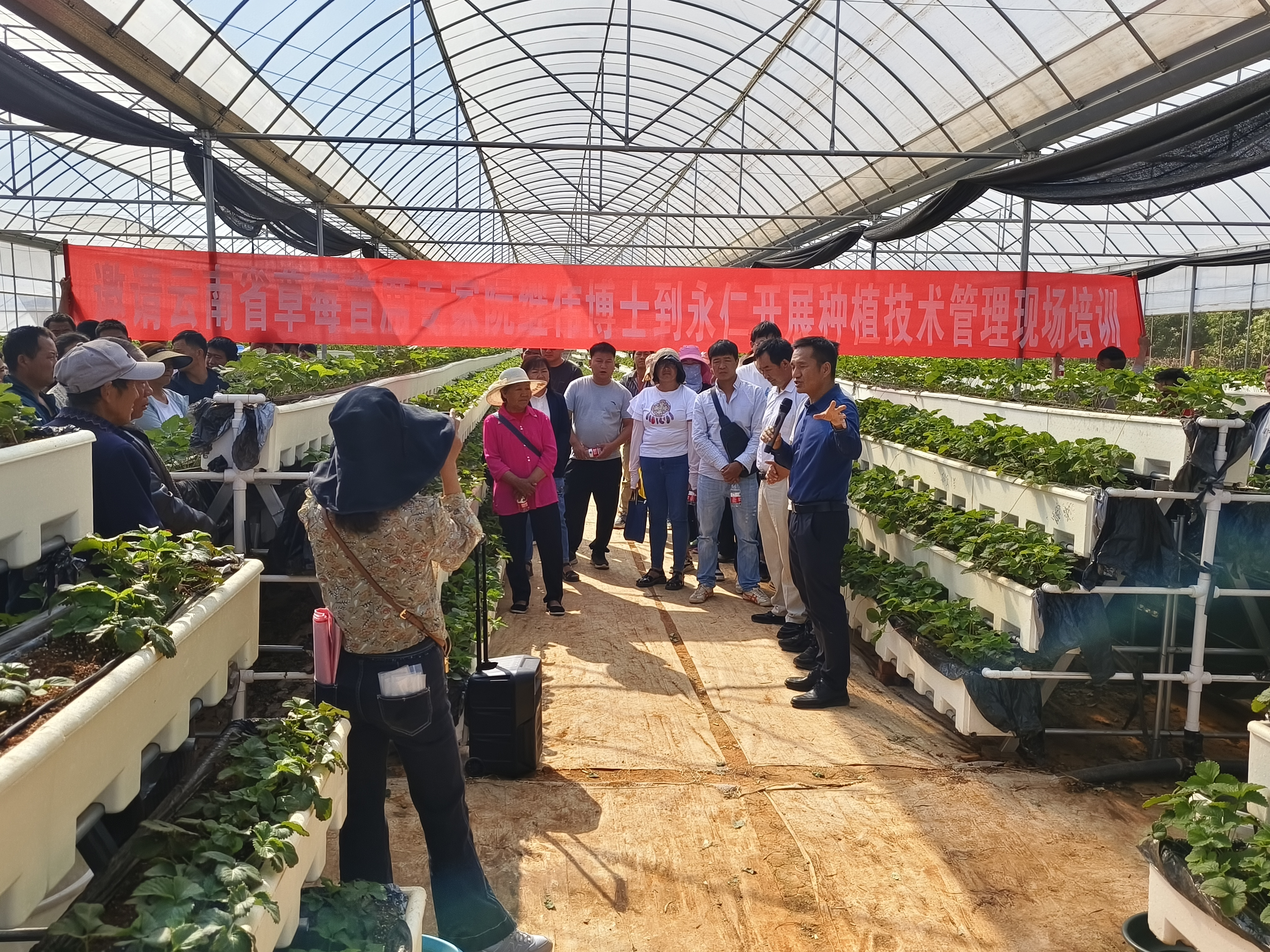 会议邀请云南省草莓首席专家阮继伟博士到会开展产业种植管理技术培训,培训以现场实地教学和室内理论授课互动交流的形式开展。与会人员首先深入到莲池班别设施草莓和宜就育苗露地栽培基地,对设施草莓发展目的意义,发展设施草莓的必要性,投资投入成本,存在问题,下步措施建议和露地育苗,发展穴盘苗的优缺点等内容进行现场授课互动。随后到莲池乡查利么村党员实训基地会议室从永仁草莓产业发展存在的问题,如何提高产业效益,要从莓粮协同发展,保障粮食安全和草莓产业科学衔接,科学正确的品种选择,育苗管理和病虫害防治措施等理论知识入手,进行室内授课。