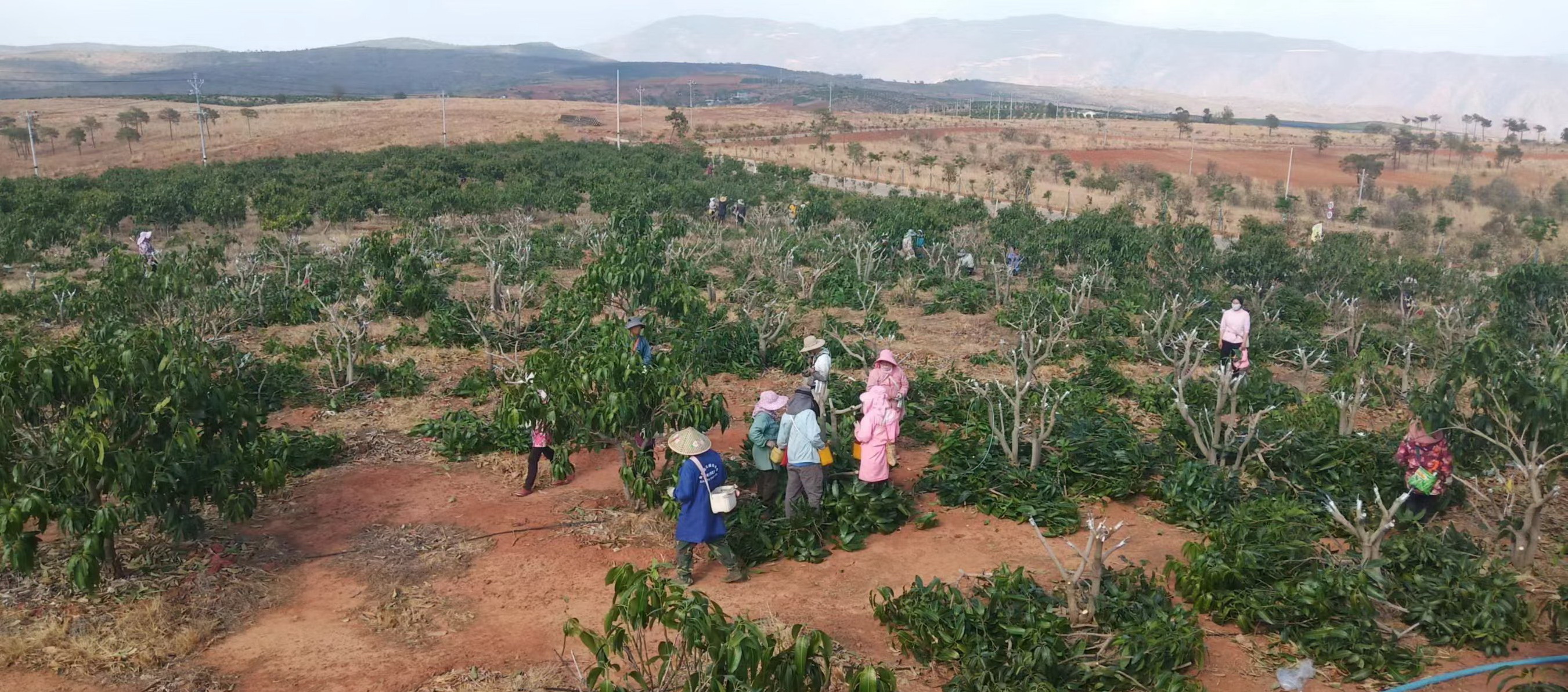 走进永仁哲林实业有限公司高原晚熟芒果新品种观察实验示范园内一片繁忙景象,云南省农业科学院热带亚热带经济作物研究所尼章光老师正带领芒果技术专家团队忙碌着,对新引进的芒果品种进行嫁接,挂标识牌。尼章光老师介绍道:“永仁哲林高原晚熟芒果新品种观察实验示范园依托云南省乡村振兴科技专项产业关键技术集成示范项目,于2024年4月19日开始启动嫁接,本次引入61个新品种实验示范观察,开展高原晚熟芒果品种引种观察试验,计划用5年的时间进行新品种示范观察,筛选出适应永仁县不同海拔气候、不同市场需求的芒果新品种。”