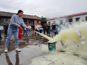 疏散演练活动结束后,紧接着由我单位职工、退役消防兵蒋红林进行消防安全培训及灭火器使用讲解,并邀请参训人员进行现场灭火,进一步掌握灭火器灭火的相关操作要领,强化减灾意识。