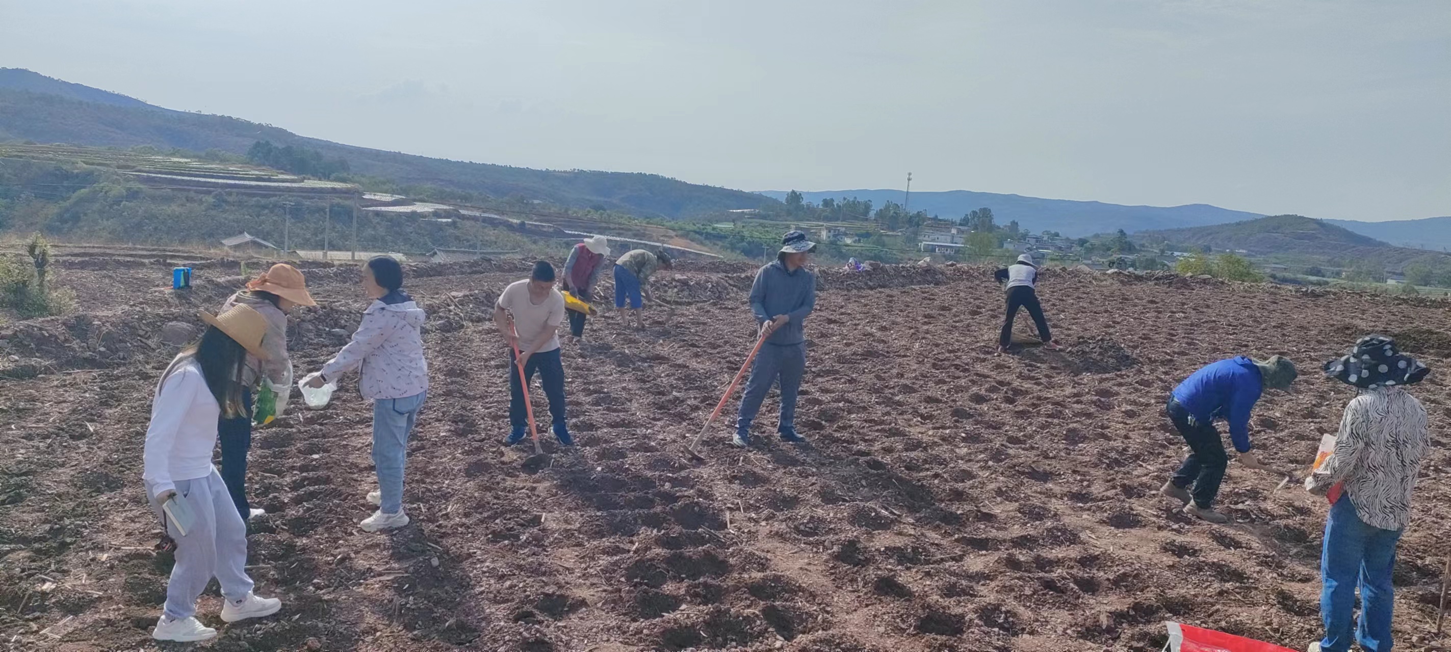 小满时节正值大豆玉米带状复合种植的关键时期,永仁县农业农村局抢抓降雨的有利时间,积极组织全县7乡镇开展大豆玉米带状复合高产种植。走进宜就镇老怀哨500亩连片大豆玉米带状复合种植核心示范样板种植现场,数十名群众分工协作,有的拉绳,有的点播,有的翻犁,县乡农业专业技术人员现场进行技术指导,亲自示范,认真讲解玉米大豆“2+3”种植模式行株距、底肥施用、田间管理等实用技术和关键环节要点,大家各司其职,干劲十足,大豆玉米带状复合种植正在如火如荼有序进行。
