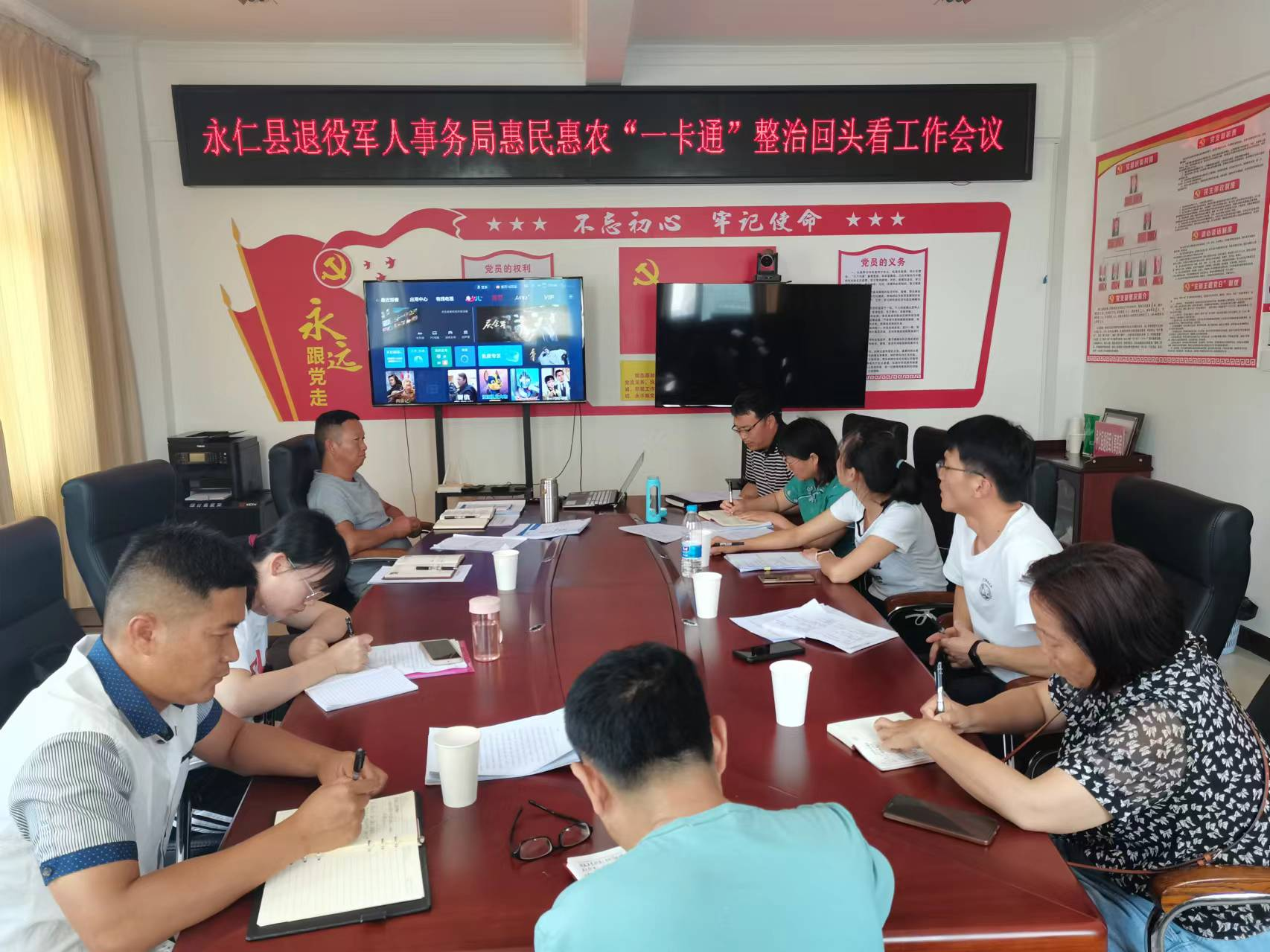 为贯彻落实《关于纵深推进清廉永仁建设工作任务》和《集中整治群众身边不正之风和腐败问题暨清廉永仁建设“惠民行动”实施方案》具体工作要求,2024年5月31日,永仁县退役军人事务局召开惠民惠农财政补贴资金“一卡通”问题专项整治“回头看”工作会议,各乡镇退役军人服务站工作人员参会。会议传达学习了中央、省州县纪委监委关于群众身边不正之风和腐败问题集中整治的部署安排和近期中央、省州县退役军人工作会议精神,听取各乡镇退役军人服务站工作情况汇报,并对惠民惠农“一卡通”整治“回头看”工作做了安排部署: