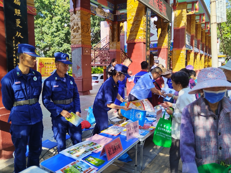 “爷爷、奶奶,你们好!这是消防宣传资料,上面有火警电话、防火常识、灭火及逃生技巧,平时用火用电要注意安全,宣传单不要扔,拿回去和家里人一起看看。”活动现场,消防宣传员用通俗易懂的语言向群众讲解了日常、工作、家庭中火灾的特点及存在的问题,并重点讲解了消防法律法规,如何正确用火、用电、用气,正确报火警和灭火器的使用,面对初期火灾的扑灭方法,火灾隐患排查及火灾隐患投诉举报方法等消防安全知识。通过“面对面”消防知识宣传,进一步增强了群众的火灾防范意识,让消防安全常识牢记百姓心中,让消防知识走进千家万户,为夏季火灾防控营造良好的消防宣传态势。