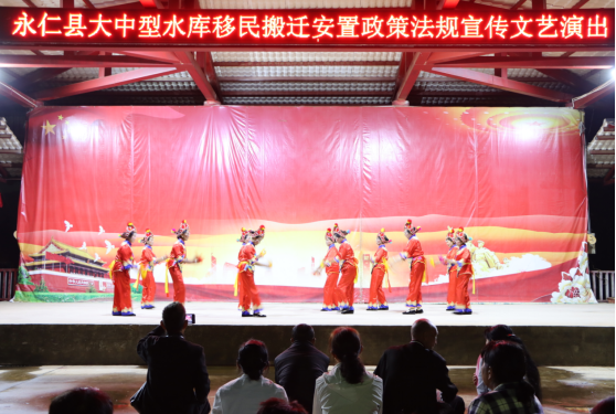 近日,由永仁县搬迁安置办公室举办的2024年永仁县大中型水库移民搬迁安置政策法规宣传文艺演出活动在猛虎乡拉开序幕。此次活动委托永仁彝乡源艺术有限公司对我县4个移民搬迁安置点猛虎乡福兴村、小哨村、小汉坝定兴、恩兴村、莲池乡莲兴村进行政策法规宣传文艺巡演,旨在通过丰富多彩的民间文化艺术形式,向广大移民群众普及水库移民政策法规知识,引导群众发自内心拥护党、感恩党,知晓党的各项惠民政策,深化移民群众知党恩、感党恩的理性认知。