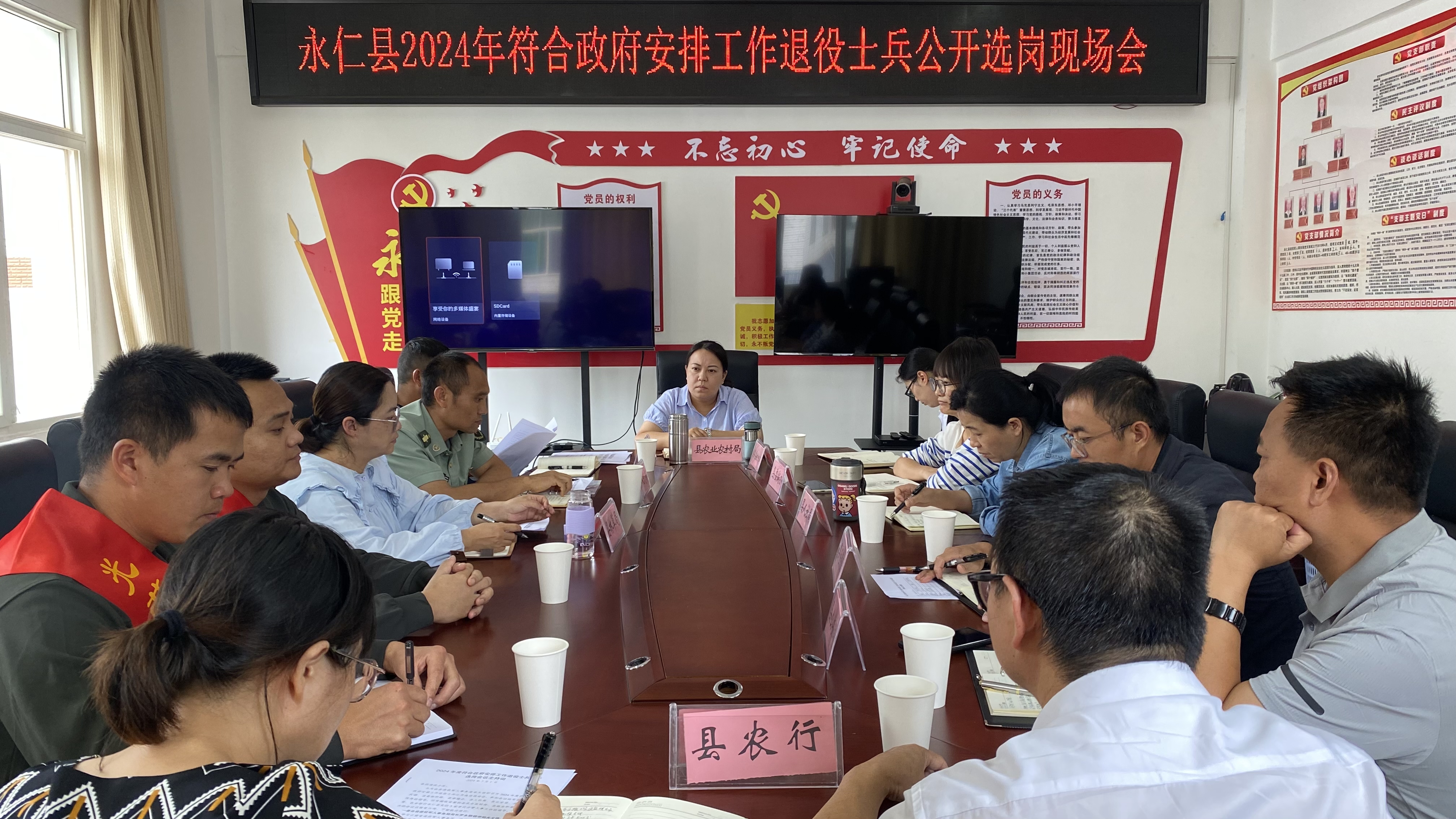 7月1日,永仁县召开2024年符合政府安排工作退役士兵公开选岗现场会,2名2024年政府安排工作退役士兵在公平、公正、公开、透明的原则下“阳光选岗”。县人武部、县委组织部、县委编办、县人社局、县公安局、县医保局分管双拥工作领导,县级安置接收单位分管人事工作领导及县退役军人事务局相关同志参加会议。