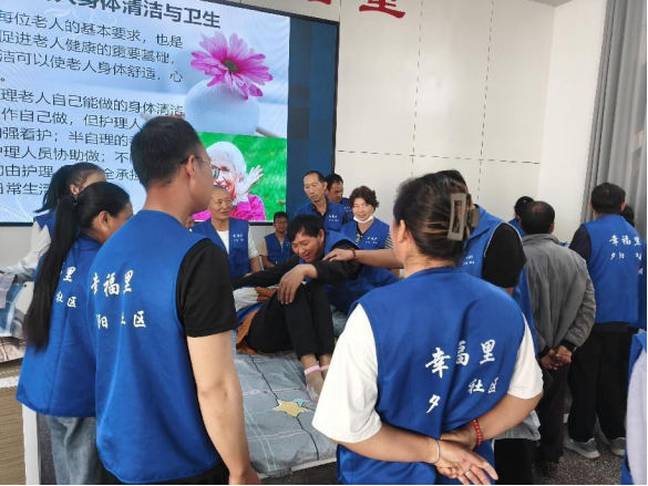 为加强永仁县养老服务人才队伍建设,进一步提升农村居家养老服务从业人员专业技能和职业素养,不断满足老年人多样化、多层次的养老服务需求,2024年9月23日至27日,由县民政和退役军人事务局主办的农村居家养老服务护理员职业技能培训班在莲池幸福里社区顺利举行,共计70名“幸福里·夕阳社区”邻里互助员参加了培训。