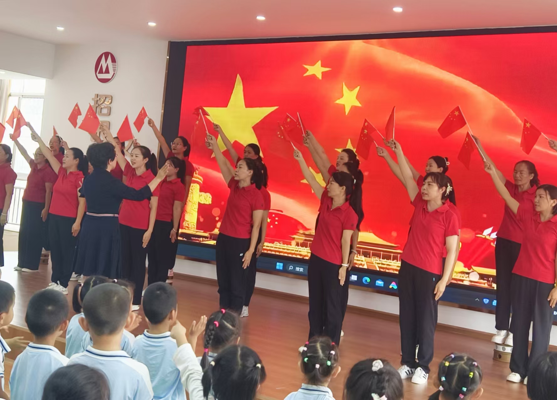 童心献礼,歌颂祖国。泱泱华夏,漫漫其道。城区幼儿园的老师和小朋友们齐声高唱《国旗国旗多美丽》,表达对祖国的爱,愿山河无恙,愿祖国繁荣昌盛。