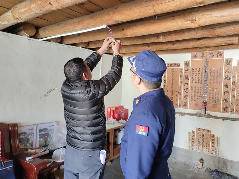 同时,对独居老人屋内用电不规范、私拉乱接、电器电线老化等现象进行逐一排查,耐心叮嘱老人不可卧床吸烟、节日期间烧香拜佛人走香灭、家中切勿堆放废旧纸箱、在屋内切勿用煤炭烤火防范一氧化碳中毒等消防安全注意事项。