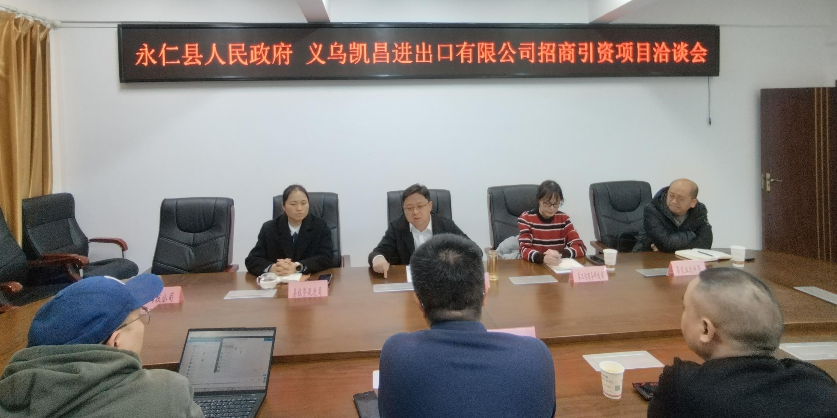2024年12月27日,义乌凯昌进出口有限公司莅临永仁县,就果蔬冷链物流及电子商务项目合作事宜进行了深入的考察与洽谈。县人民政府副县长梁启昌出席,县级相关部门负责同志参加座谈。