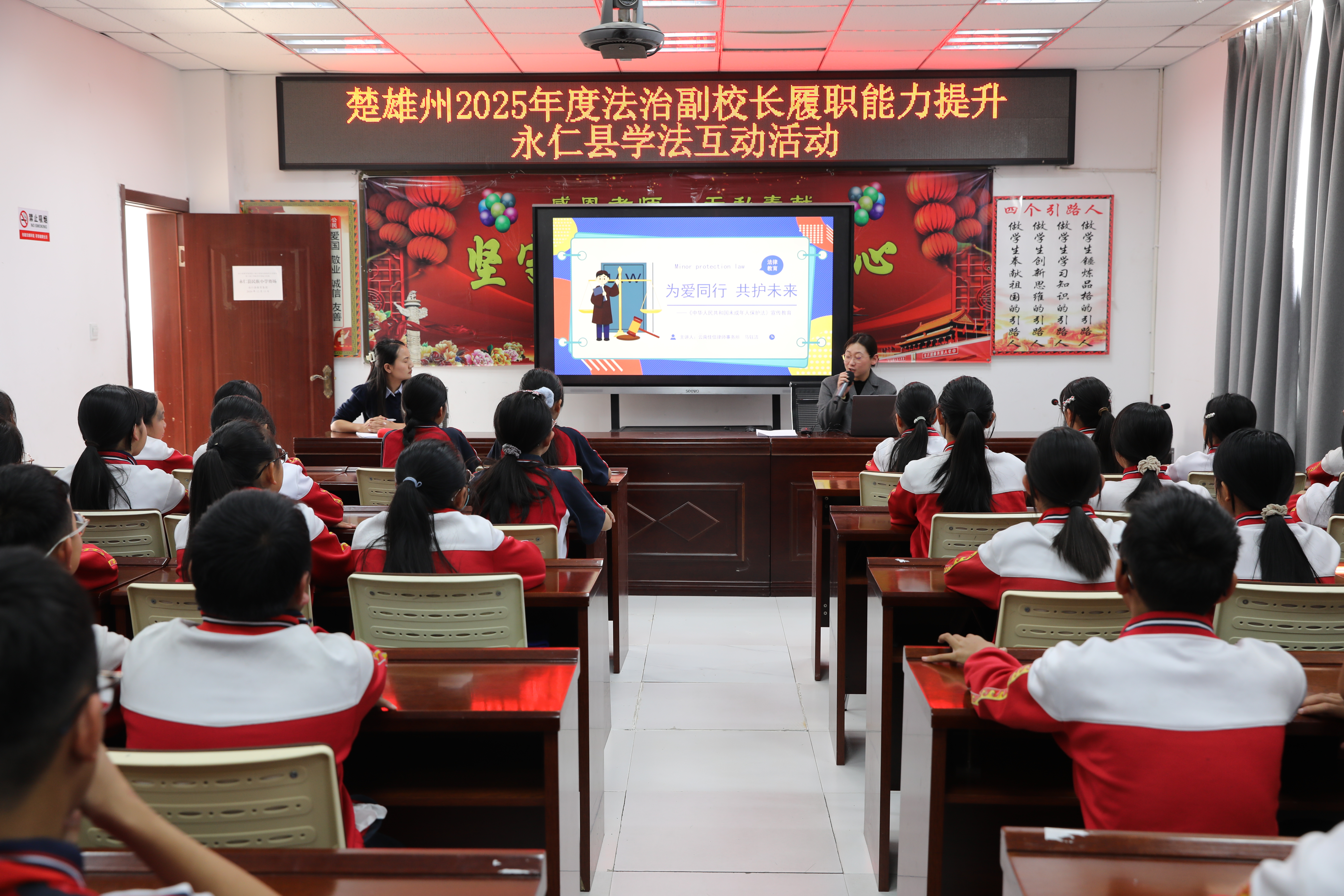 在永仁县民族中学和永仁县民族小学的法治互动宣讲暨观摩活动课上,讲授律师围绕“防范电信网络诈骗、防欺凌、校园贷等侵害青少年合法权益等主题,用通俗易懂的语言,通过介绍相关法律知识、分析典型案例、法律知识抢答等互动形式,为师生普及法治知识。