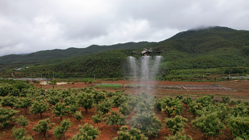 永仁县维的乡么吉利村党总支书记纳保生说:“我们么吉利村委会板栗有9400多亩,如果用人工的话相当耗时费力。引进无人机,一个是省时省力,第二就是无人机喷药相当均匀,对病虫害的防治效果都更好,老百姓的接受度比较高。”