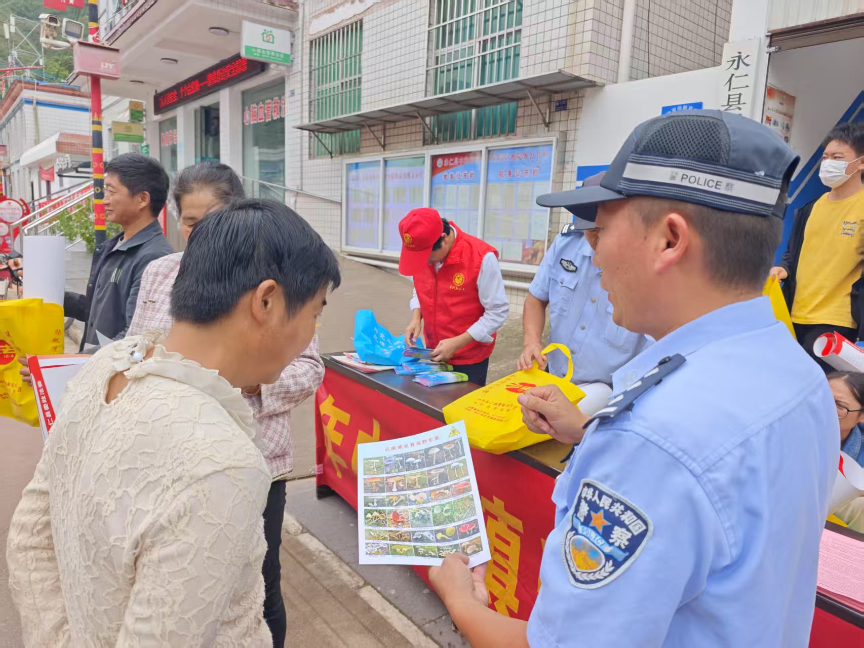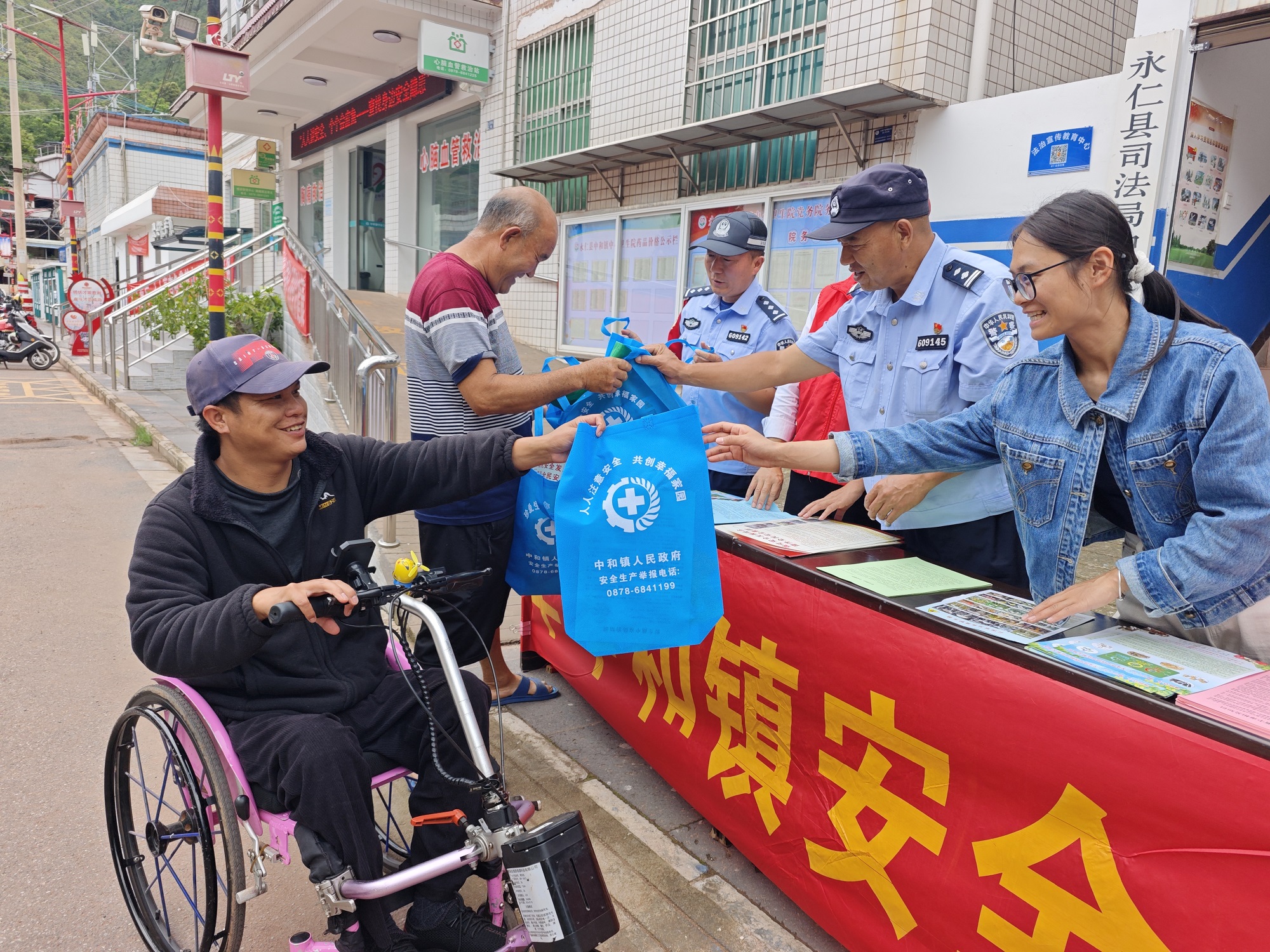 活动现场,工作人员利用赶集天,设置宣传台,悬挂宣传横幅、播放音频,联合了镇平安法治办、农业农村发展服务中心、消防综合应急救援队、经济发展办,中和自然资源所、中和派出所、中和市场监督管理所、中和司法所等多个部门共同开展,涉及耕地保护知识、农业用药知识、用气用电知识、预防野生菌中毒、防灾减灾、普法强基、禁毒防艾、反恐防暴、道路交通安全、消防安全、防范非法集资和电信诈骗、保护林业资源等多个方面,向过往群众发放知识手册、应急处理指南宣传单,并通过互动答疑的形式进行讲解,为老年少数民族群众提供“双语”宣传服务,用通俗易懂的语言向群众普及各类知识。