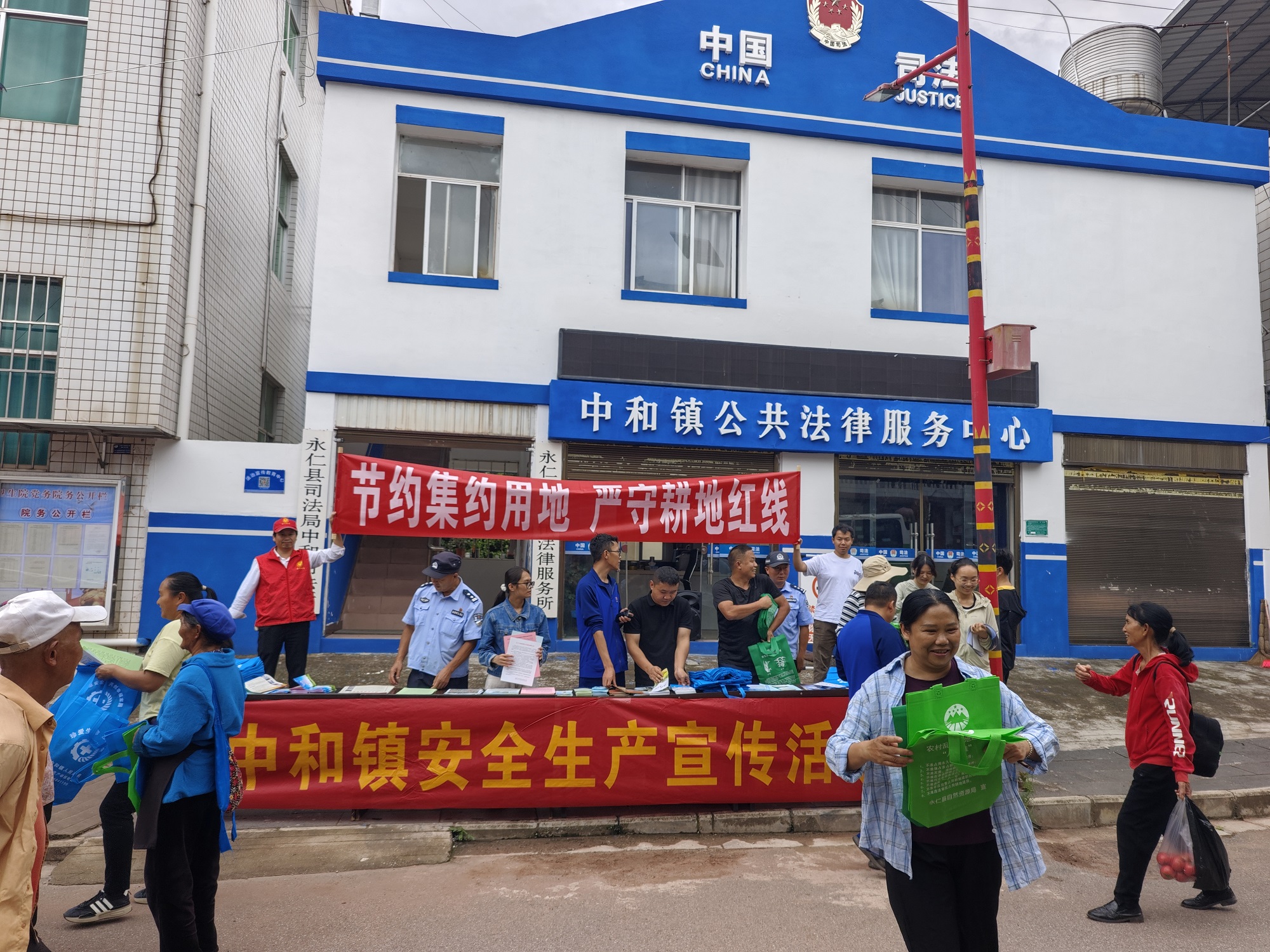 2025年6月25日上午,中和镇结合第24个全国“安全生产月”、第35个全国“土地日”主题,开展集中宣传活动,切实增强群众安全防范意识和应急处置能力,深入宣传加强耕地保护的重要意义,全面提升保护耕地、节约集约用地意识。