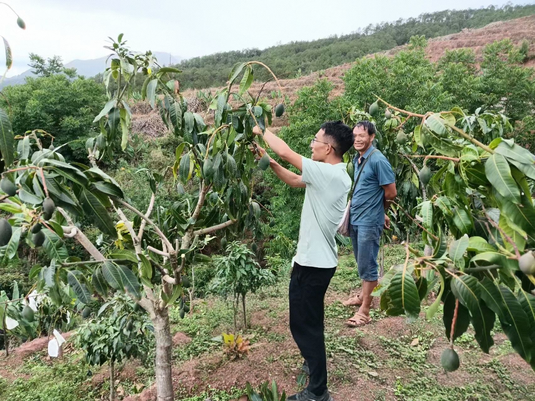 移动诊室,“新农具”三件套“暖人心”。李加剑的身份早已超越了普通的种植户,他是乡亲们信赖的“技术顾问”。每天,他骑上摩托车,载着测土仪、放大镜、配药箱这“新农具三件套”,穿梭于乡间果园,免费为农户精准“把脉”,并根据需要配送药肥,把服务送到田间地头。帮洒组善荣昌家种了200多颗凯特芒果,因不懂技术,花期白粉病肆虐,几近绝收。李加剑主动上门,精准指导用药方案,成功控制疫病,今年,善荣昌的果园迎来了前所未有的累累硕果。
