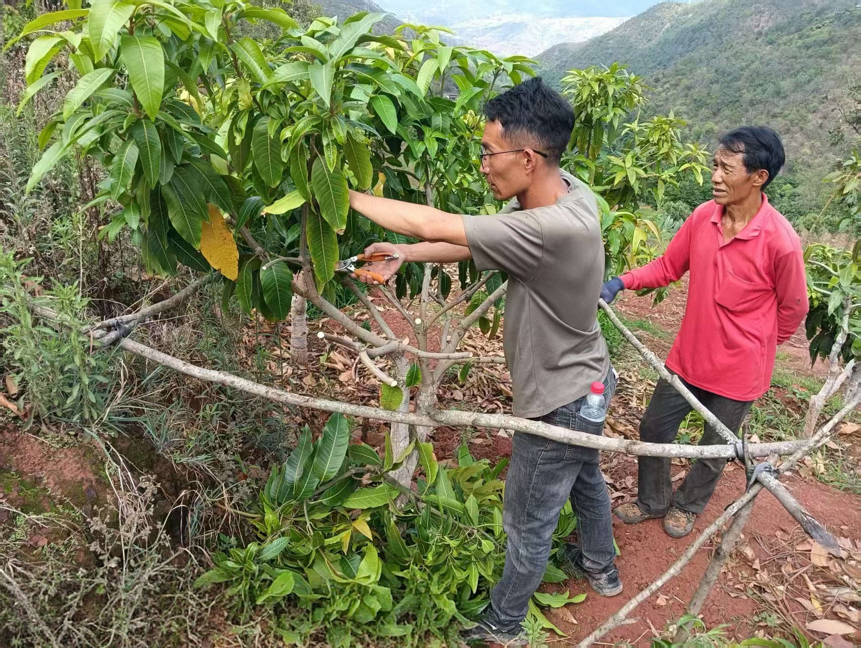 党建引领,合作社架起“连心桥”。在镇党委、政府及万马村党总支的支持下,返乡能人李加剑积极响应,与党组织共同探讨实践“党组织+合作社+农户”发展模式,成立万马高原芒果种植专业合作社。这不仅是产销对接的平台,更是技术共享的枢纽。依托合作社平台,建设了平价农资超市,并定期组织技术培训、经验交流和市场信息咨询,李加剑更是在其中发挥了核心组织和技术引领作用。这些举措有效将分散的农户紧密团结在党组织周围,形成发展合力。