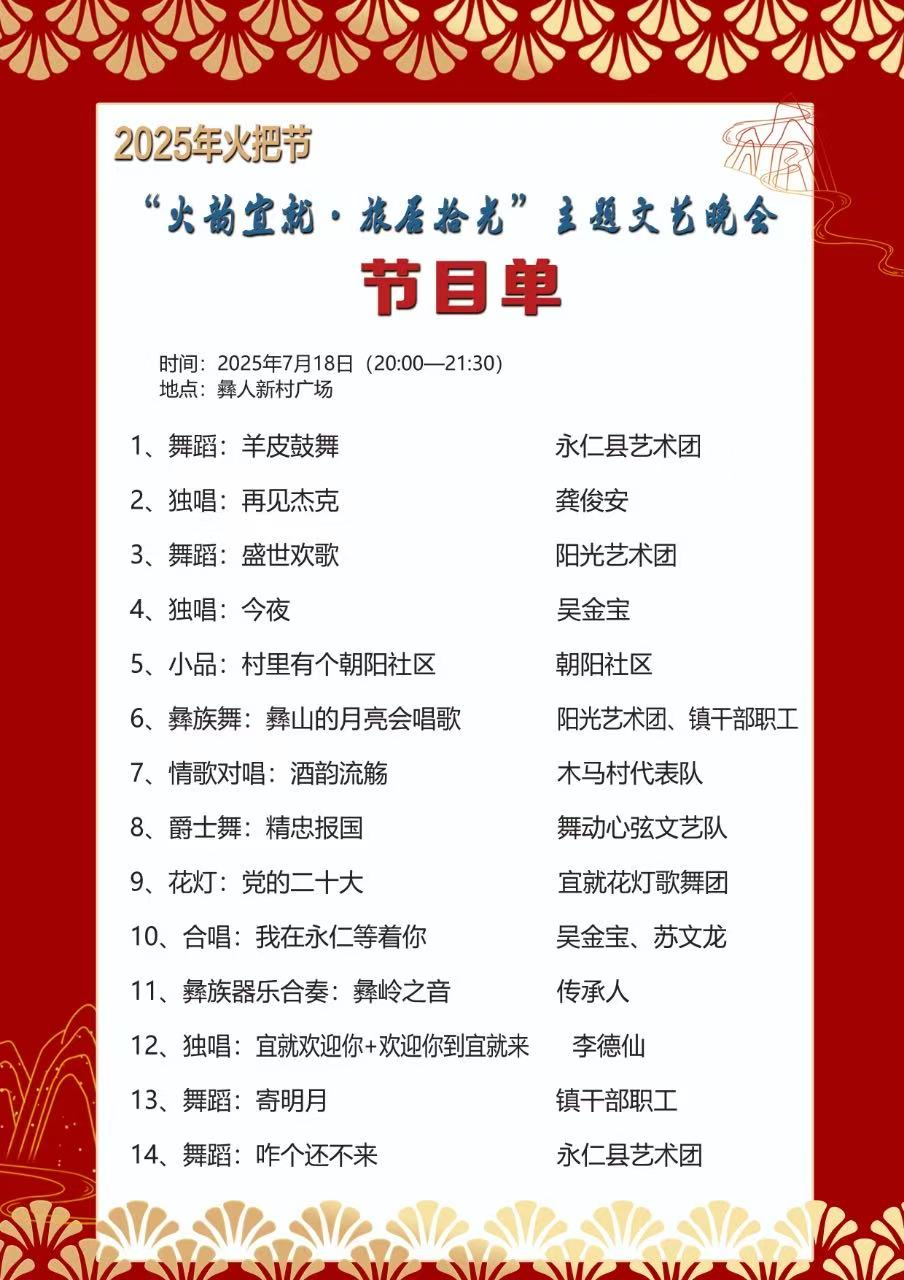 让我们相聚在熊熊燃烧的火把节之夜,在璀璨星光与动人旋律中,共同点燃激情,拾取属于宜就的独特光韵!