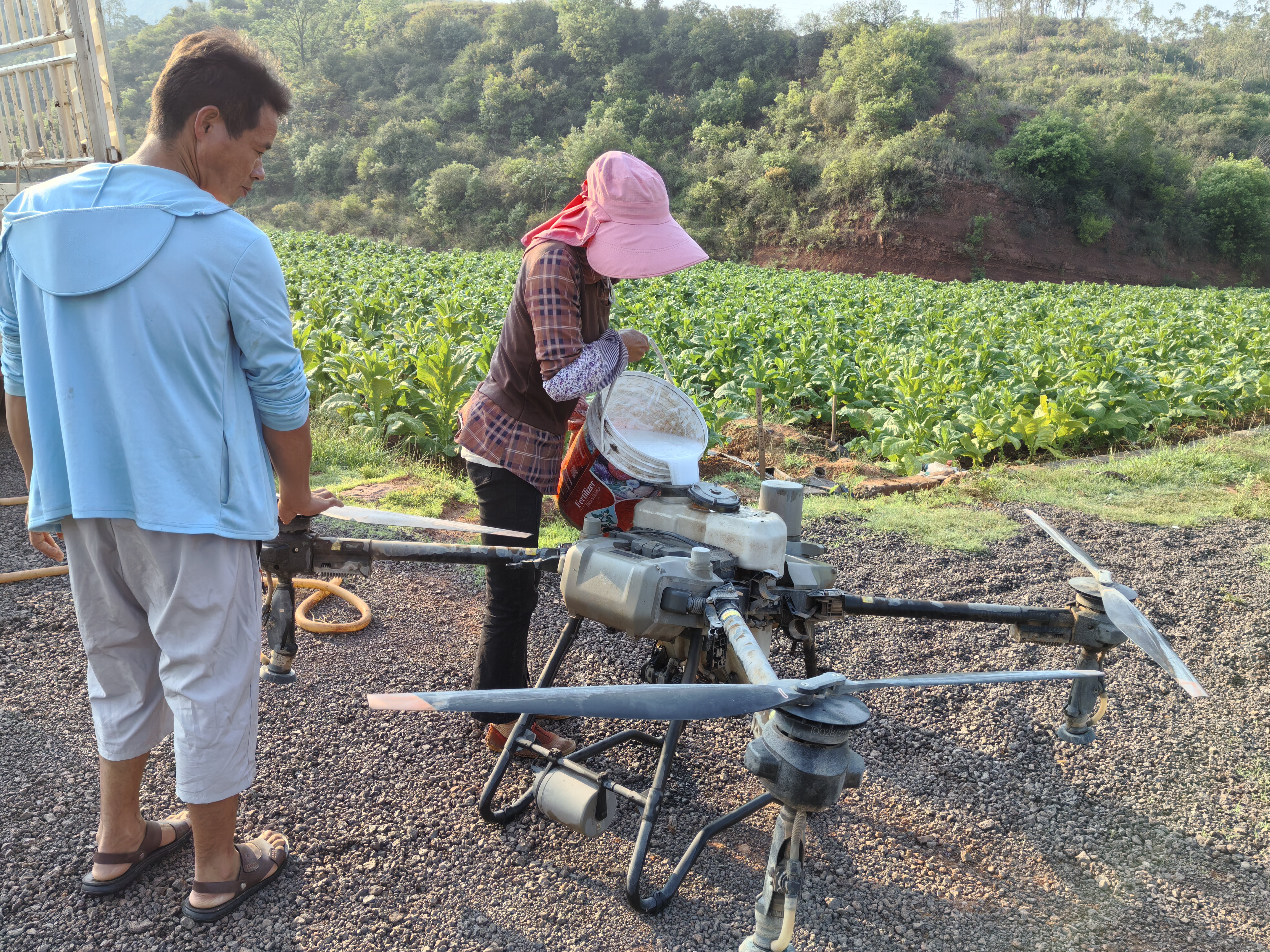 科学用药、效果倍佳。在农业技术员的指导下,针对当前烟田易发的蚜虫、烟青虫、赤星病等病虫害,精准配比低毒高效农药,减少农药残留,确保烟叶绿色安全。据了解,相比传统的人工打药模式,无人机喷洒农药的优势更加突显,具有速度快、效率高、可规模化作业等特点,相比较传统的人工施肥、打农药的方式技术含量更高,其施药效率、效果更佳。