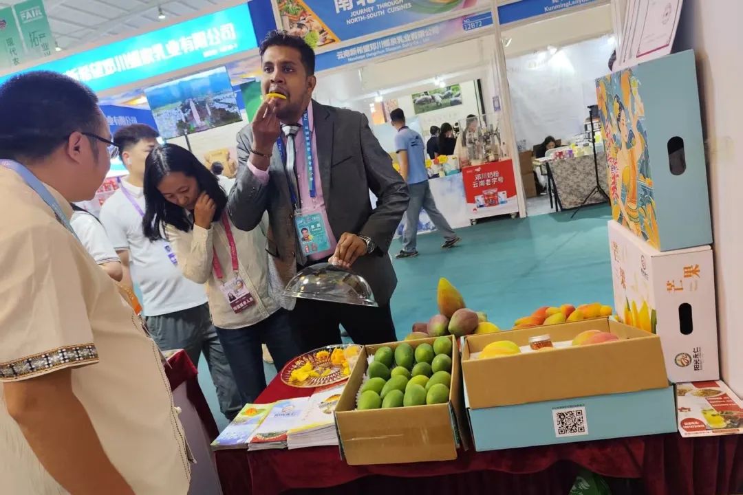 此番南博亮相,远非一次产品展示,更是永兴芒果品牌国际化征程的里程碑!永兴傣族乡精准锚定这一世界级舞台,通过视觉(诱人陈列+民族风情)、嗅觉(自然果香)、味觉(巅峰体验)、互动(深度讲解)打造沉浸式感官盛宴,将“永兴芒果=高端热带水果标杆”烙印在全球客商心中,有效打通了地方特色优质农产品与国际高端市场对接的“快车道”。