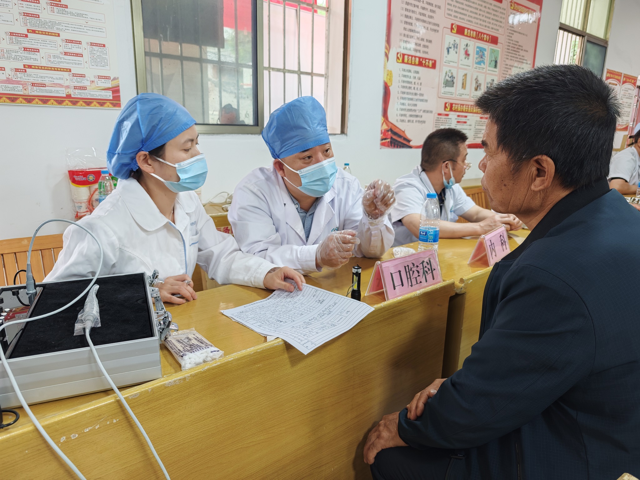 6月30日清晨,由内科、外科、牙科、中医科等9名骨干医师组成的医疗团队,携带便携式心电图机、B超检测仪等医疗设备,驱车1个多小时抵达偏远的莲池乡勐莲村。一到目的地,在村委会临时义诊点,医护人员顾不上休息,迅速投入工作。“大爷,您这血压有点高,平时要注意饮食清淡,按时服药。”面对闻讯赶来的村民,医务人员逐一耐心询问病史,仔细检查身体,并现场开展健康知识科普讲座。