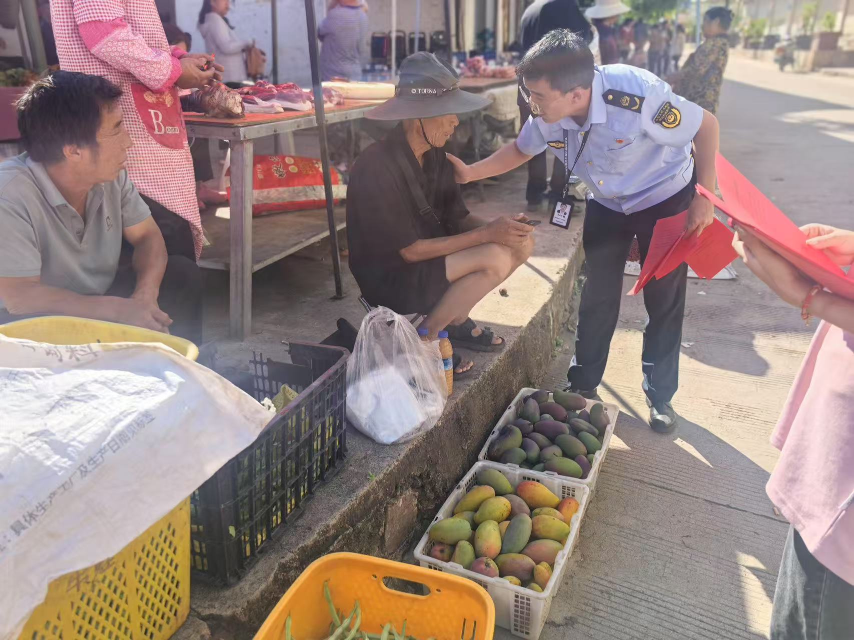 “大爷,您这两筐芒果再往后挪一挪,方便车辆,行人通行,我帮您抬进去吧,里面的摊位有遮阳棚,不晒!”7月29日清晨,永仁县永兴傣族乡综合行政执法队员正在耐心劝导占道经营,筐里的芒果金黄耀眼,像此刻商贩大爷眼角的泪光“政府没赶我们走,是给我们找了个更亮堂的‘家’。”——这是永兴傣族乡集镇最动人的一幕,也是全乡“人情味”治理“占道经营+乱停乱放”的缩影。