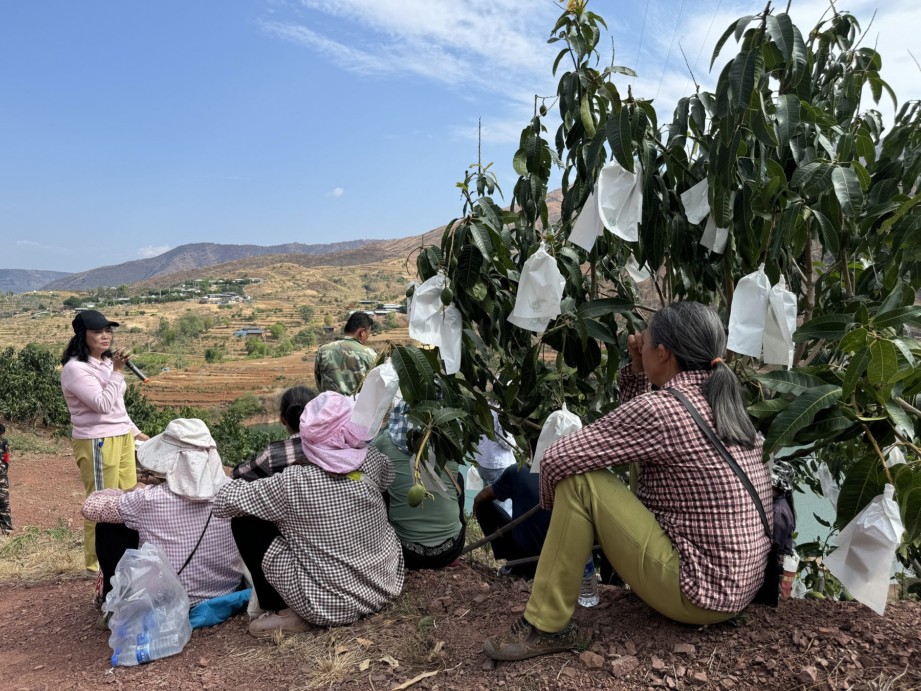 “今天,我们主要讲解芒果的蔬果、保果、套袋以及病虫害防治,只要学会了技术,按照技术要点管理芒果,就能提高芒果产量和质量……”