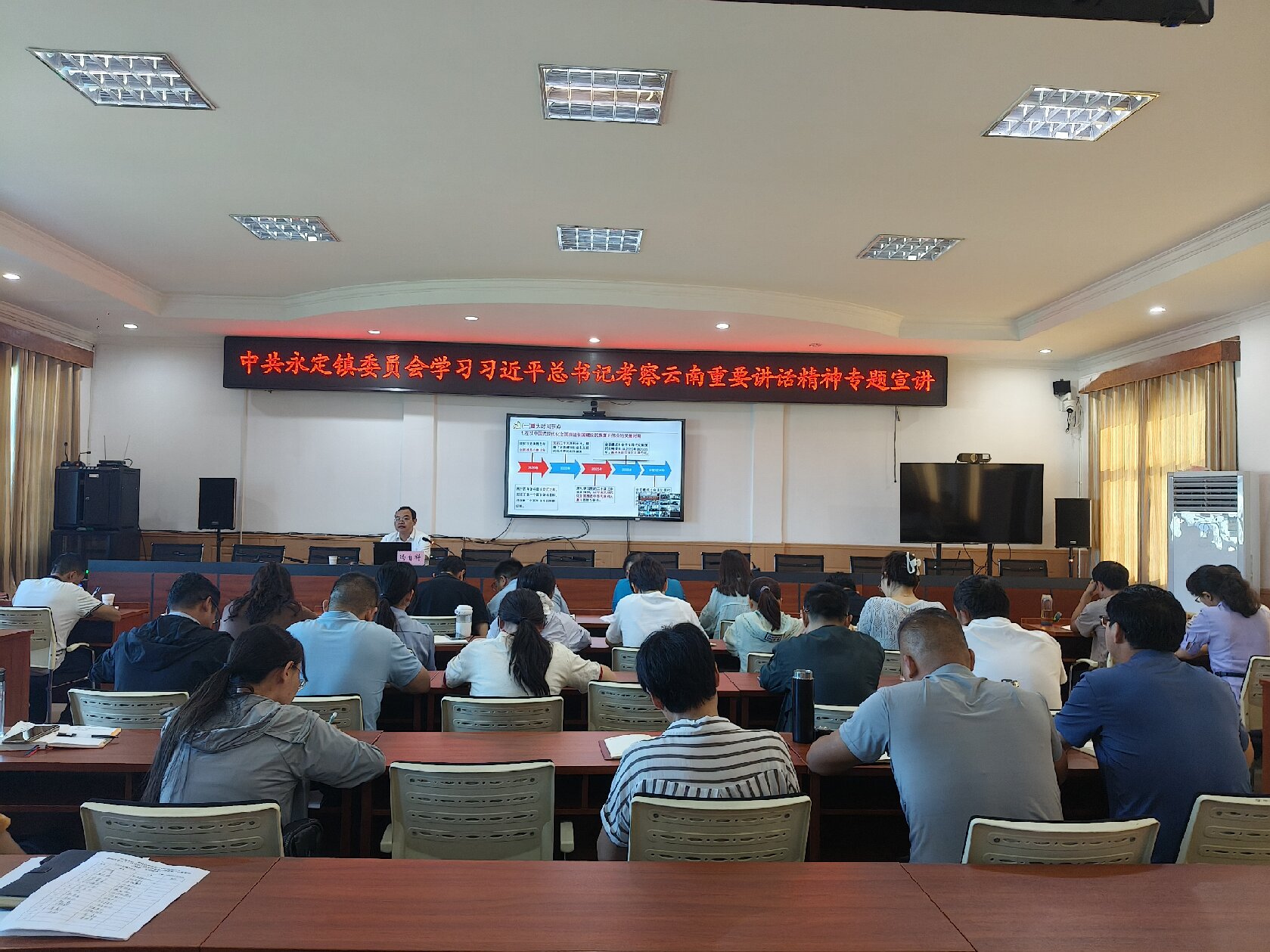 永定镇党委特别邀请县委党校冯自科老师作“学习习近平总书记考察云南重要讲话重要指示精神”专题辅导。冯自科老师从习近平总书记考察云南的重要意义、讲话的精神实质和丰富内涵、对地方发展的战略指引等多个维度展开讲解。通过详实的数据、生动的案例,深入浅出地阐述了习近平总书记对云南在经济发展、生态保护、民族团结、对外开放等方面提出的新要求,为参会的同志带来了一场理论盛宴。
